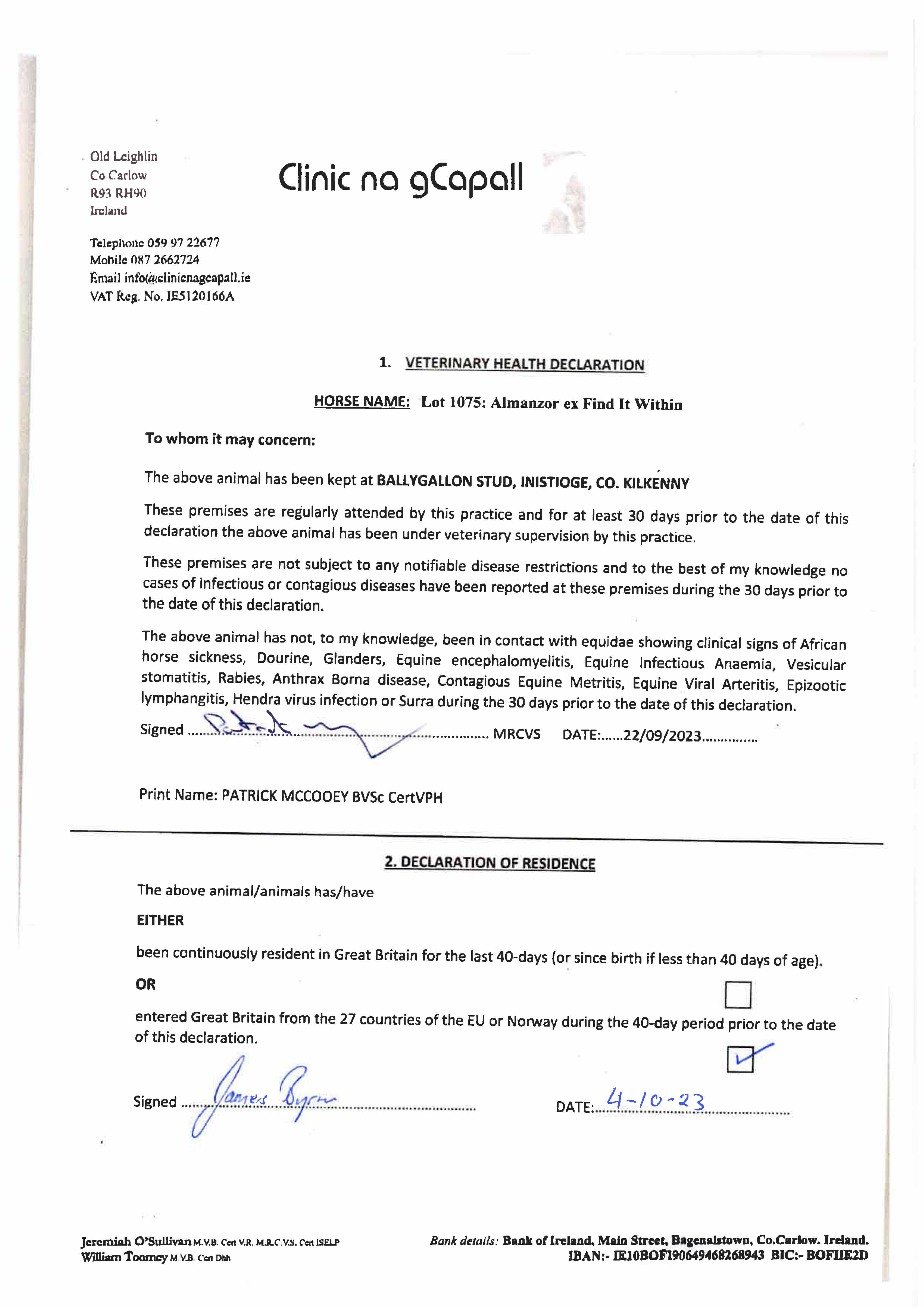 Consignor: Ballygallon Stud (Ireland) Ltd.