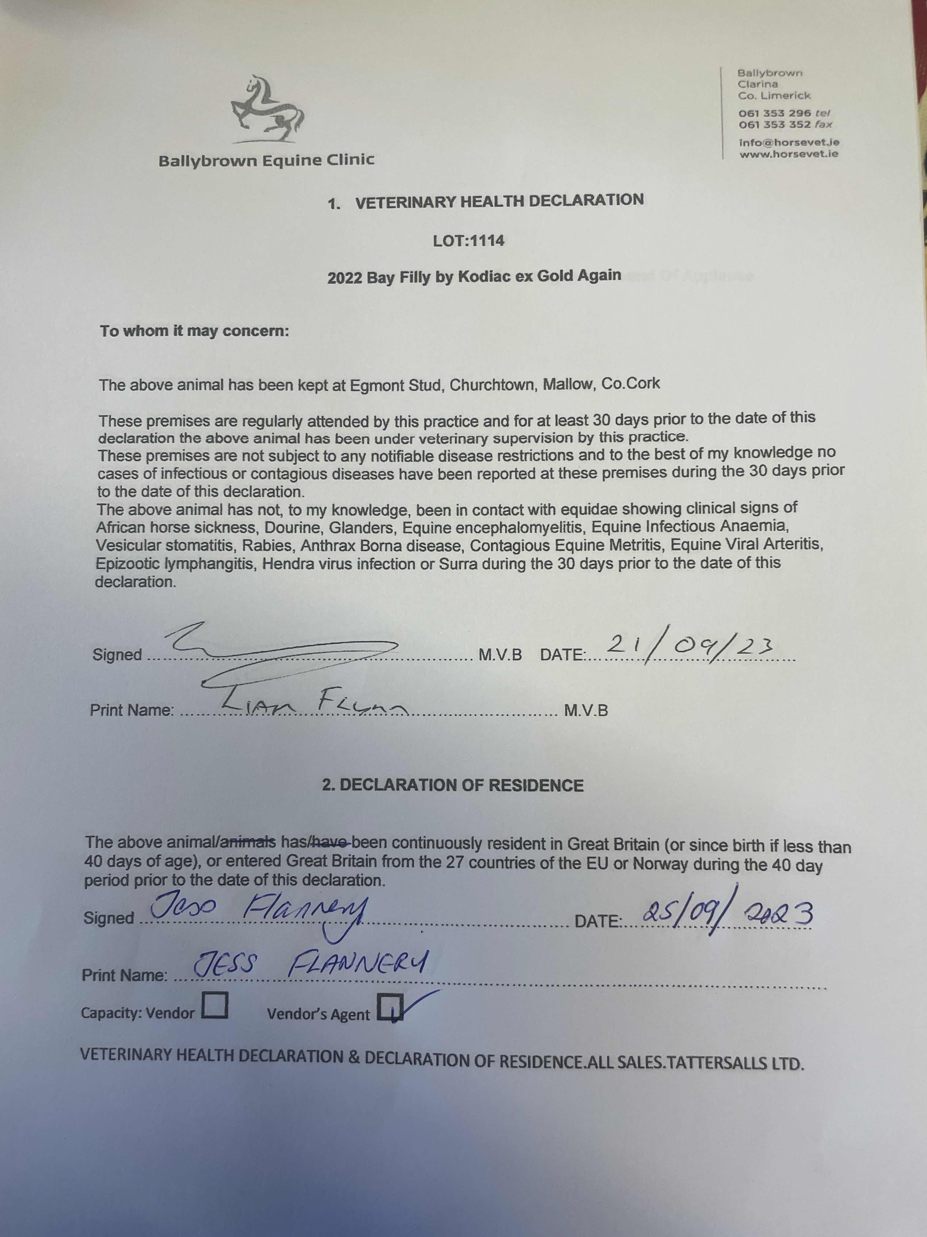 Consignor: Egmont Stud, Ireland