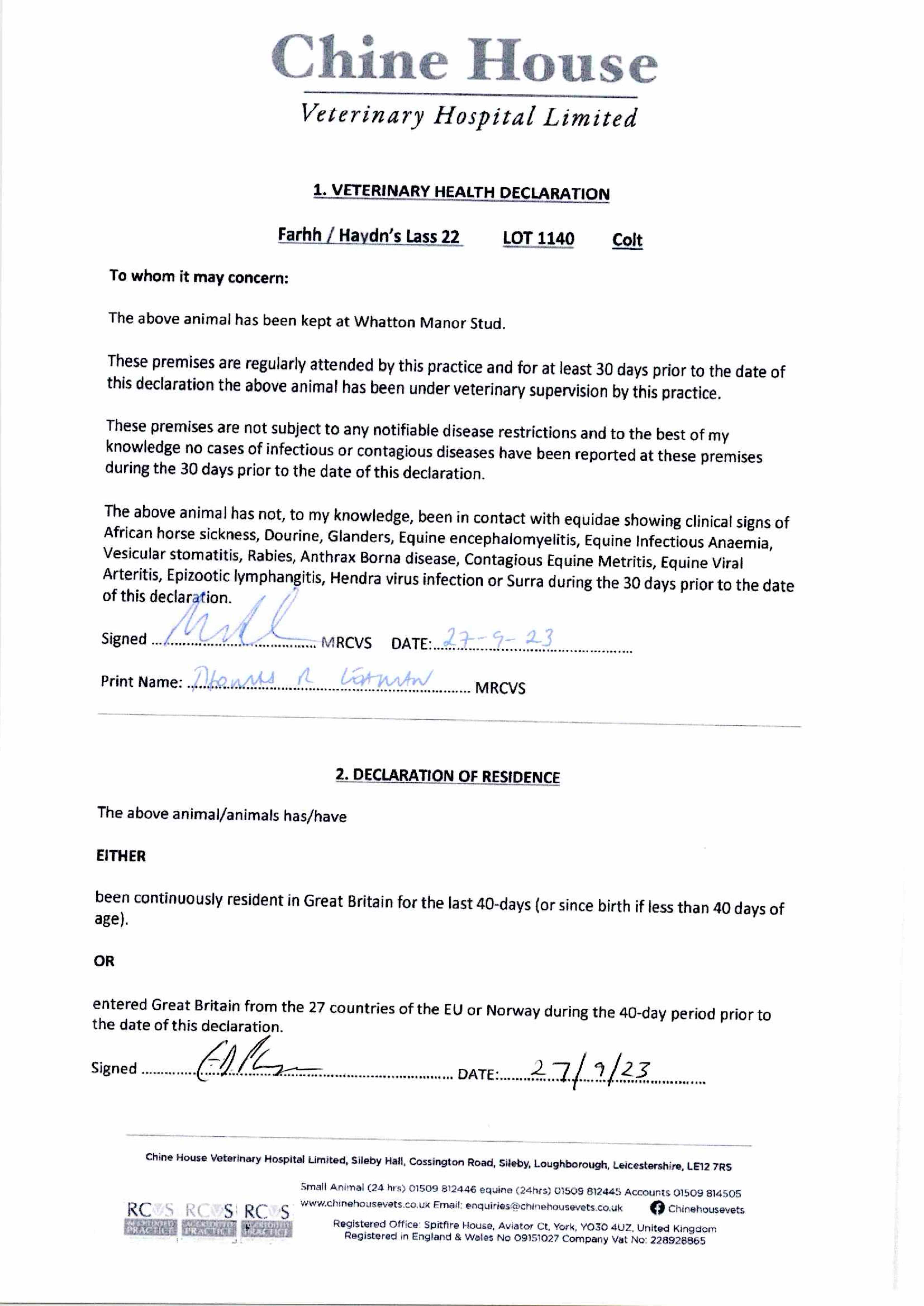Consignor: Whatton Manor Stud
