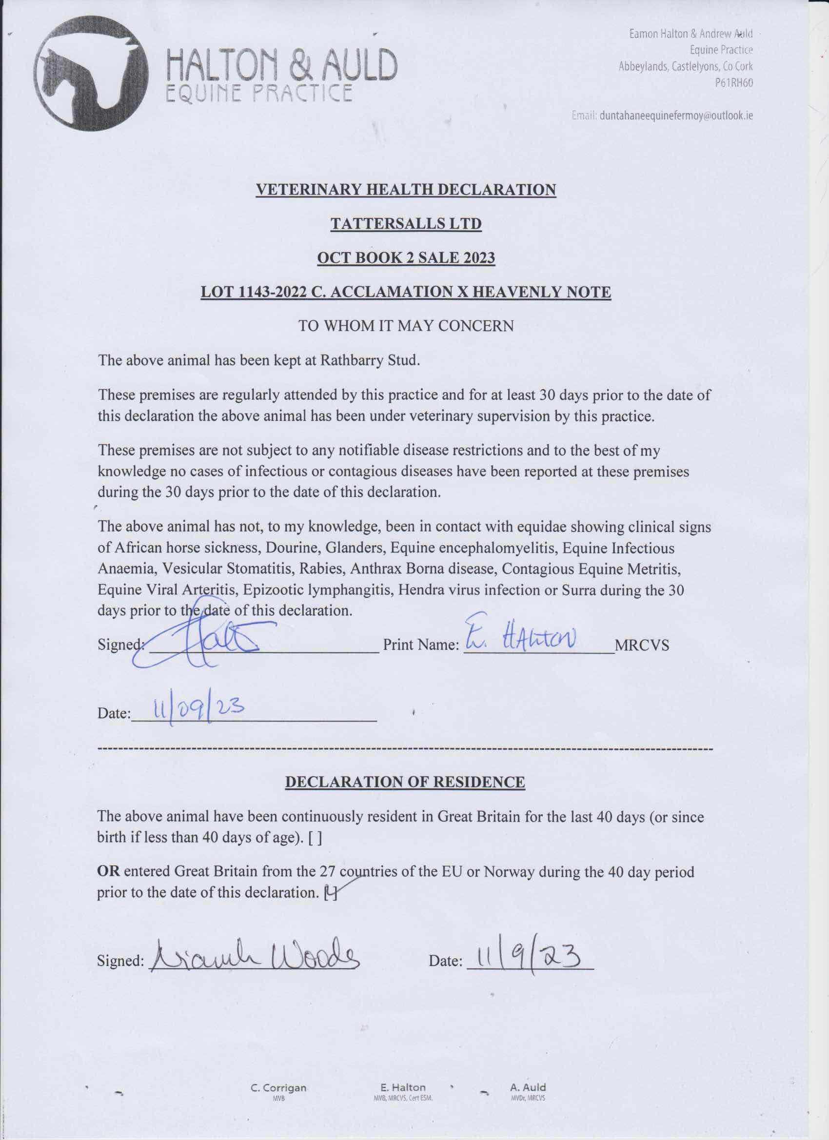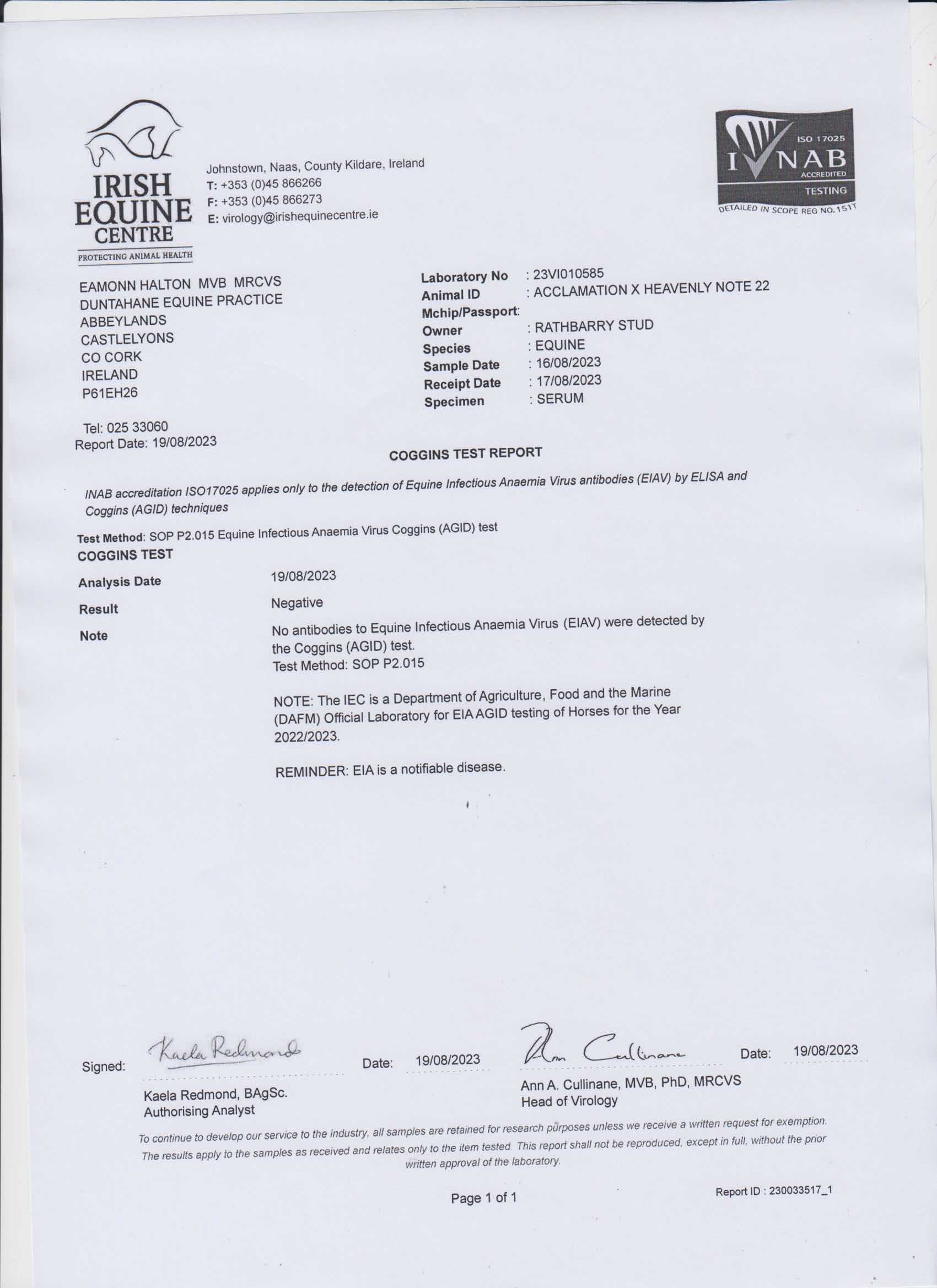 Consignor: Rathbarry Stud, Ireland (Agent)