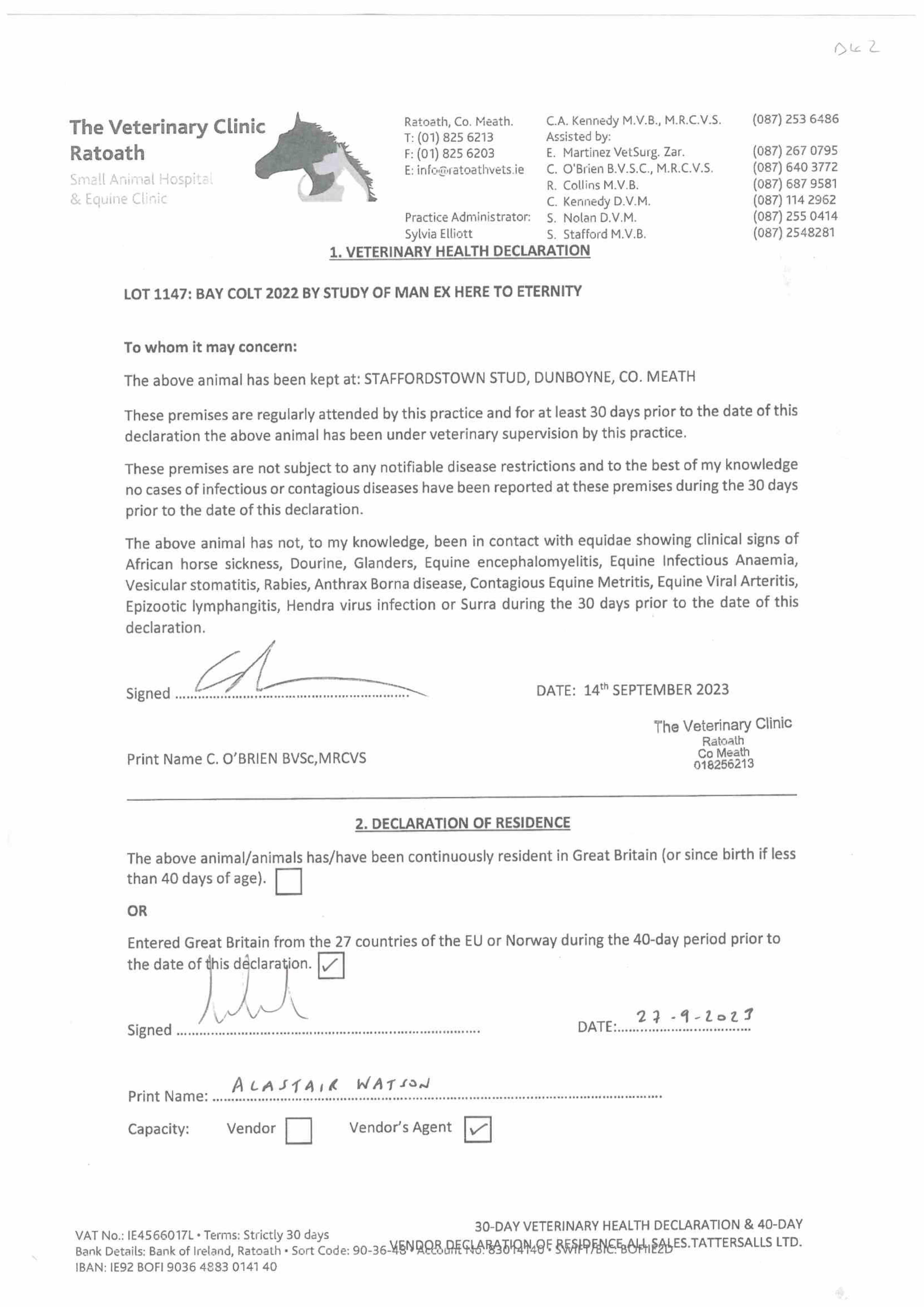 Consignor: Staffordstown, Ireland