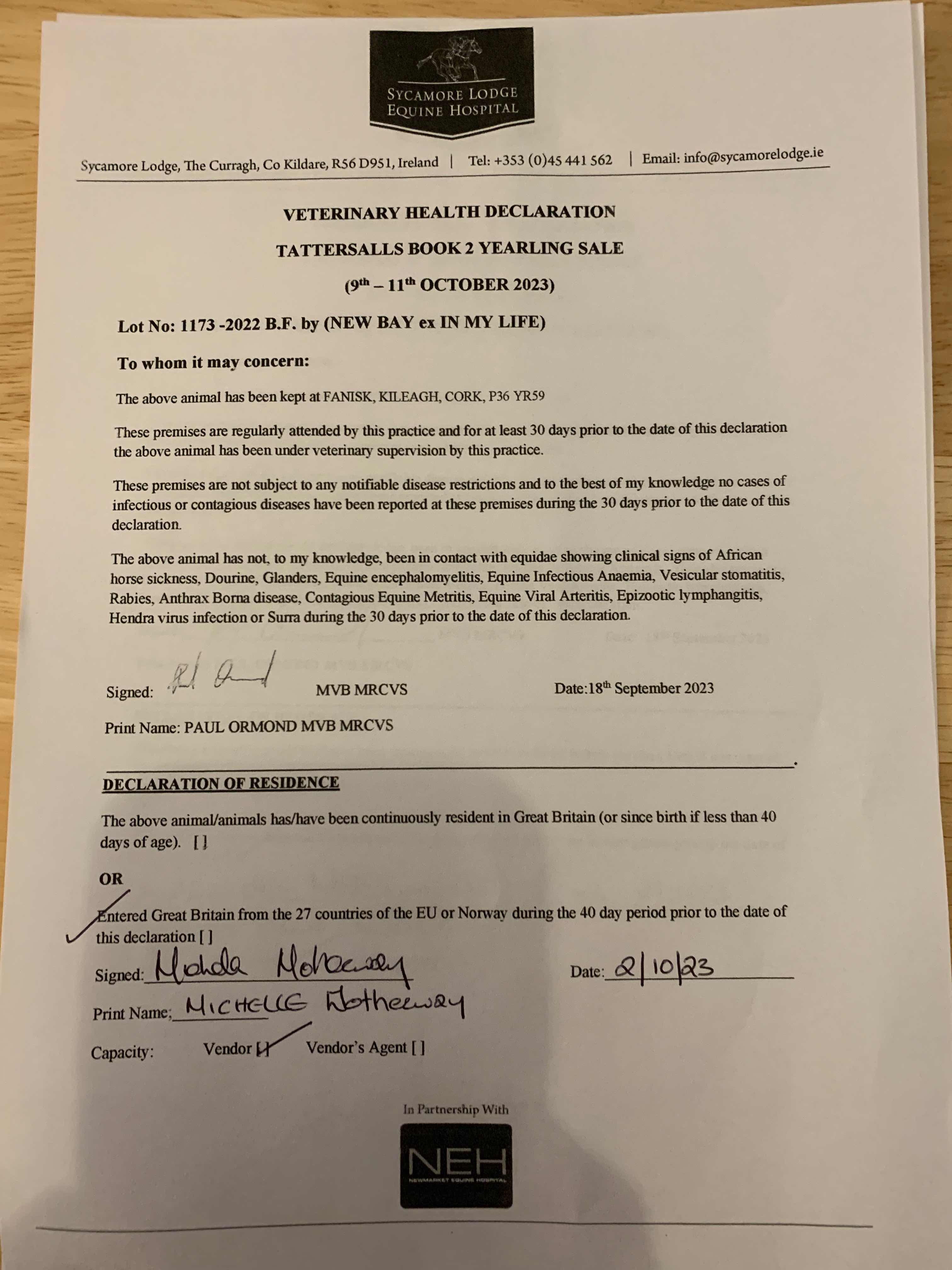 Consignor: TDM Bloodstock, Ireland