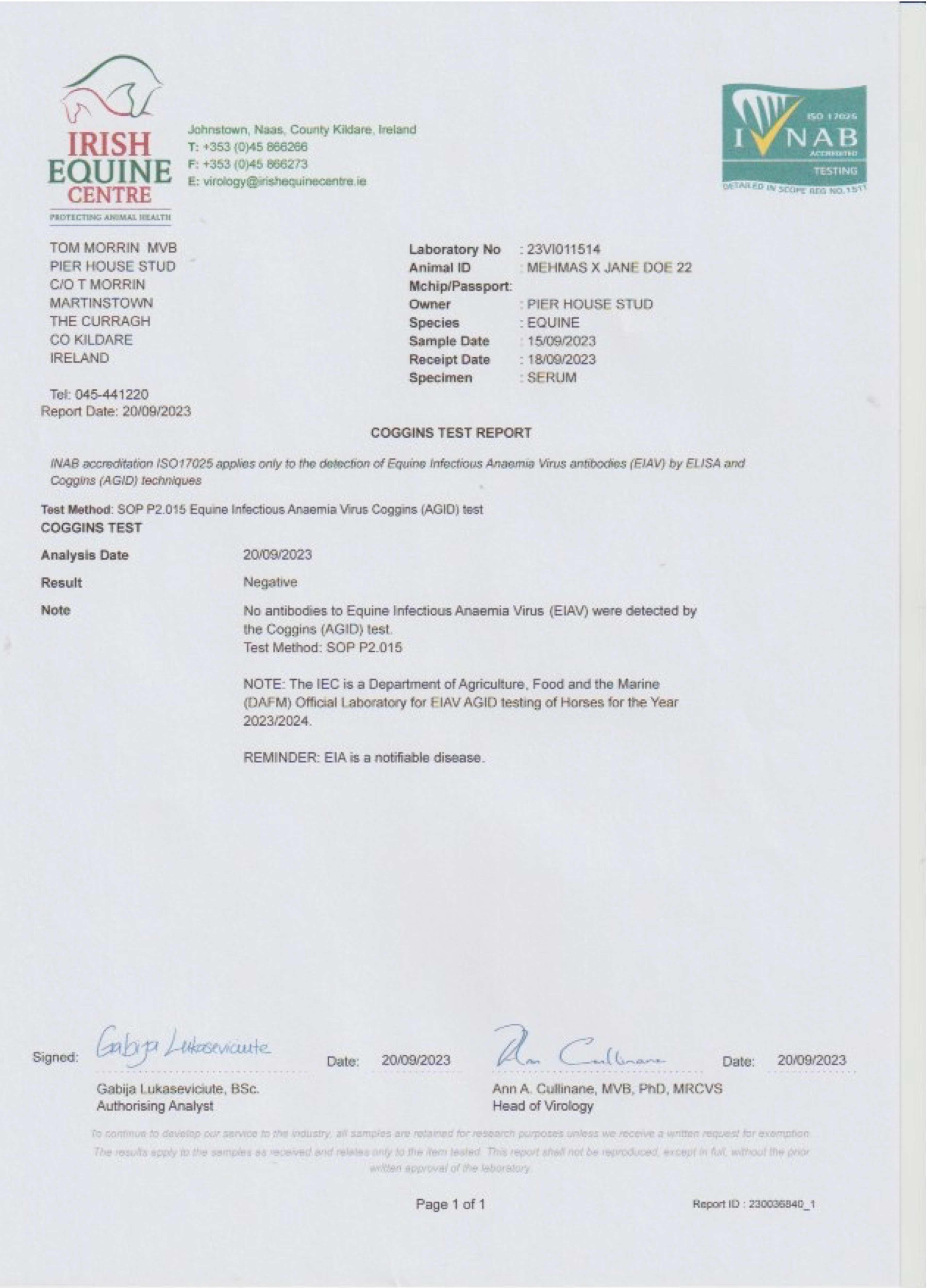 Consignor: Pier House Stud, Ireland