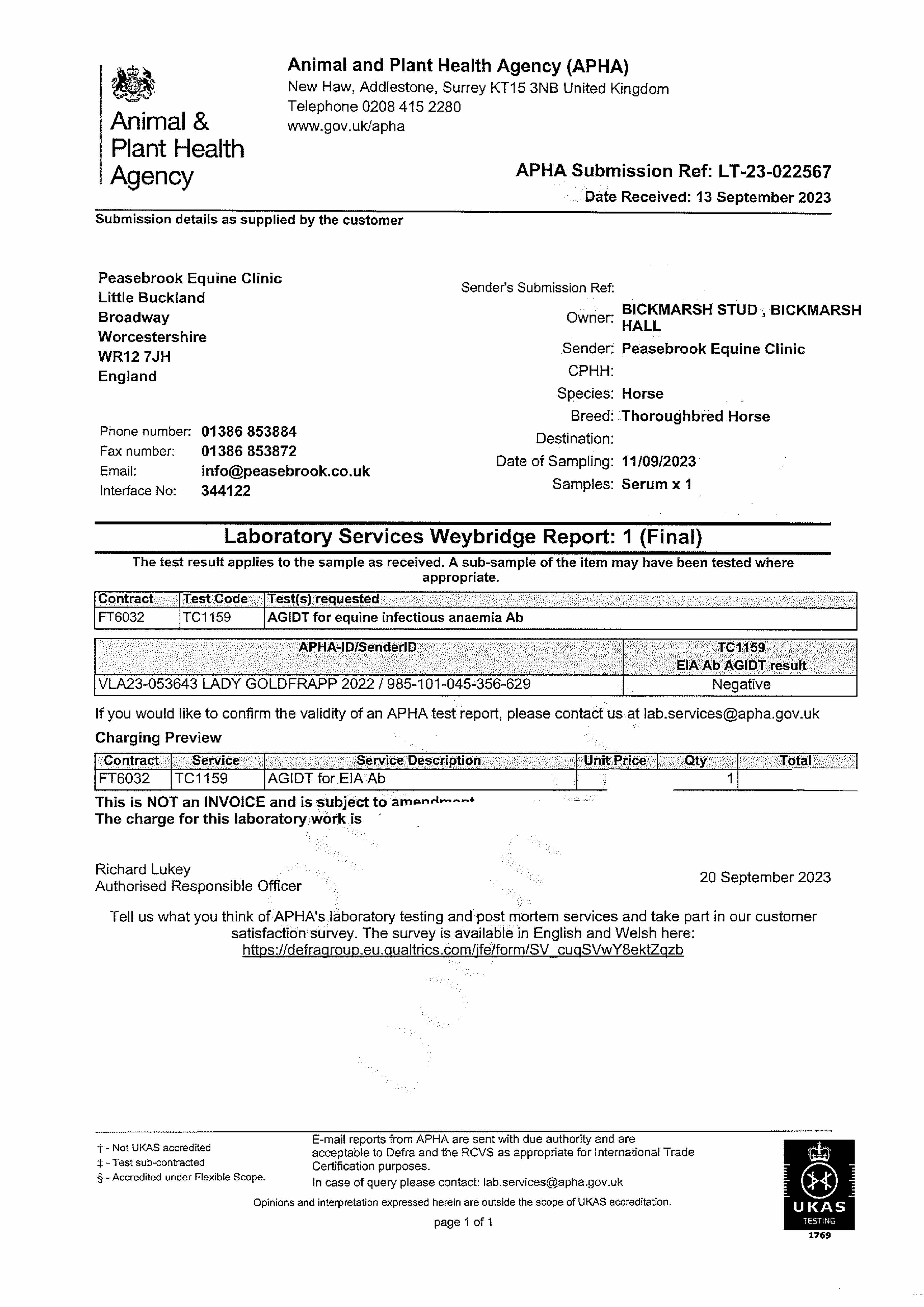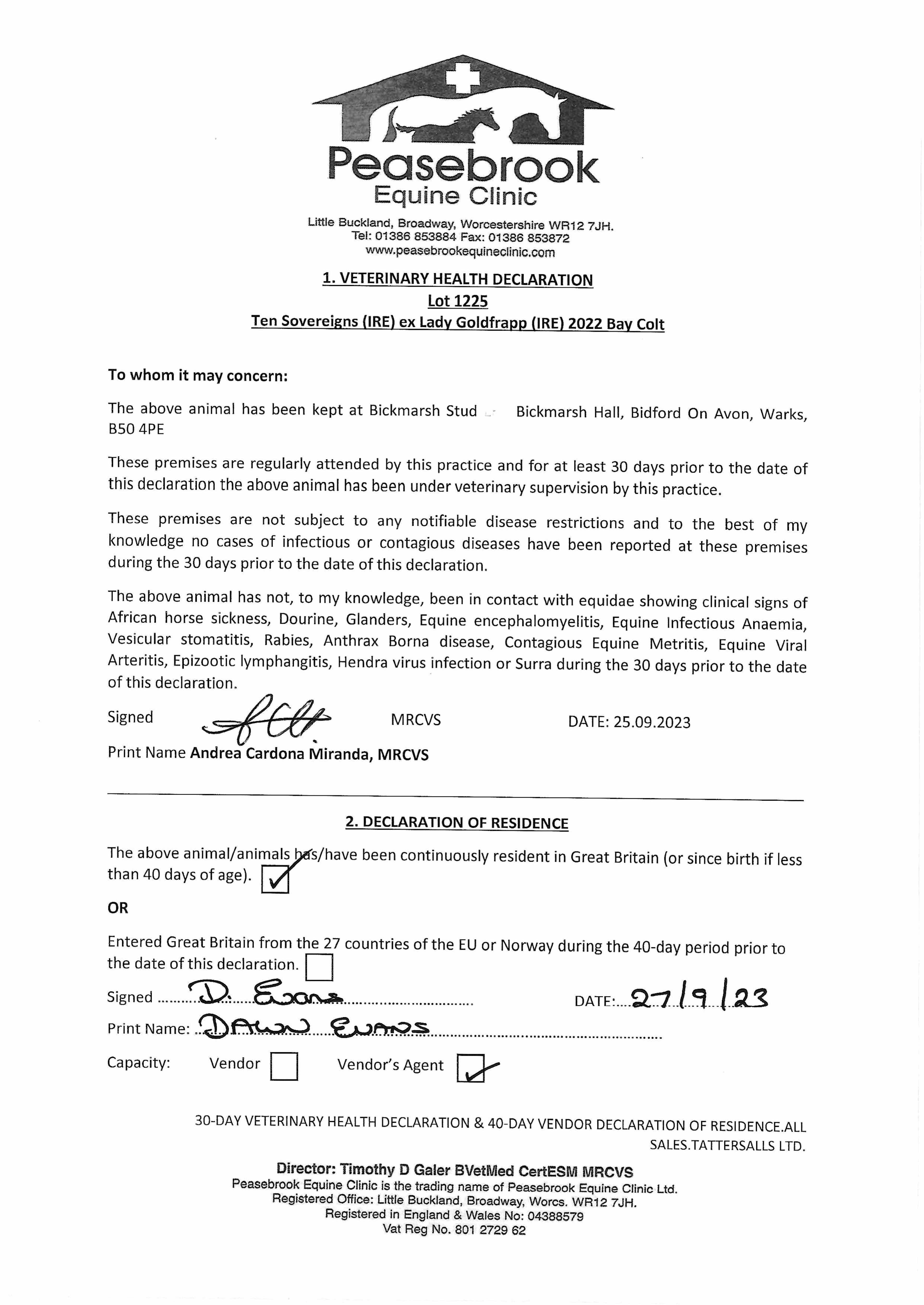 Consignor: Bickmarsh Stud