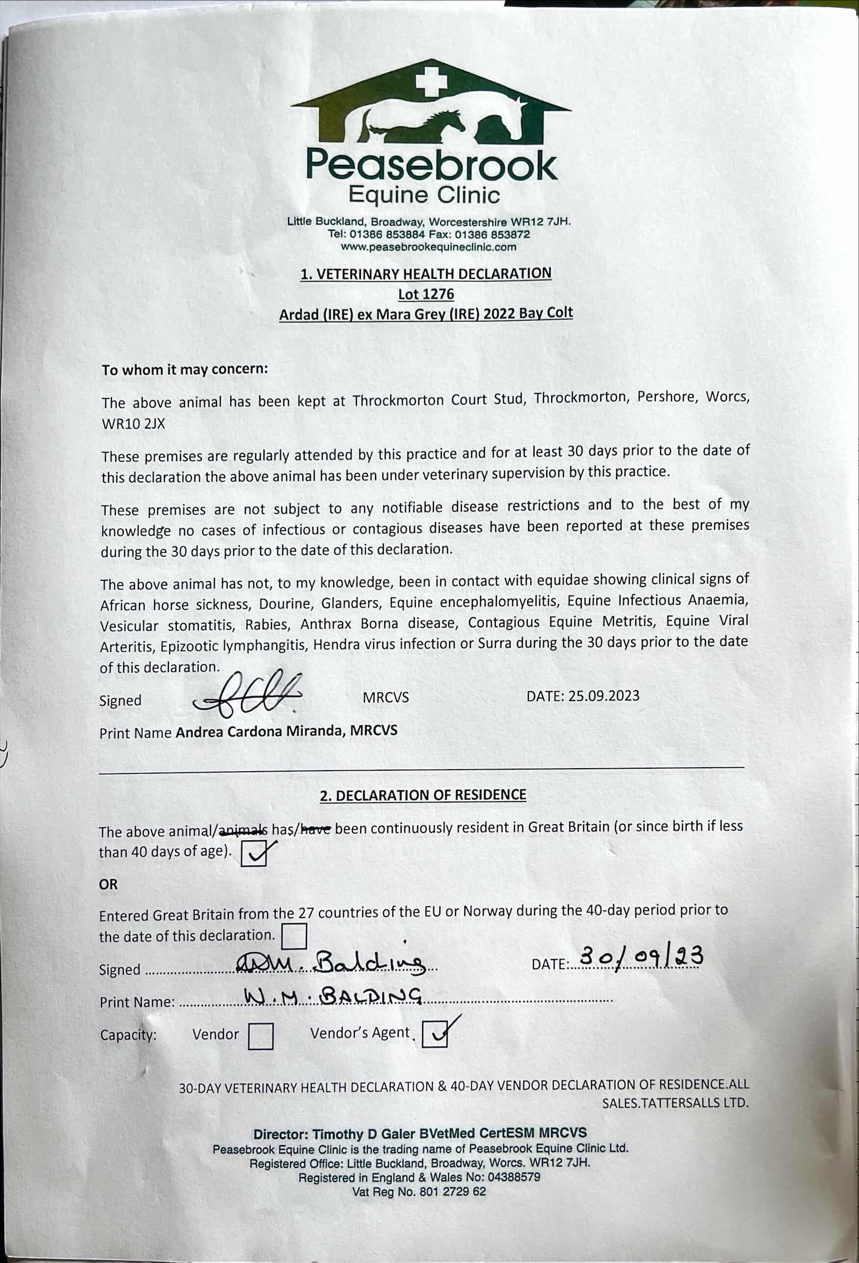 Consignor: Throckmorton Court Stud