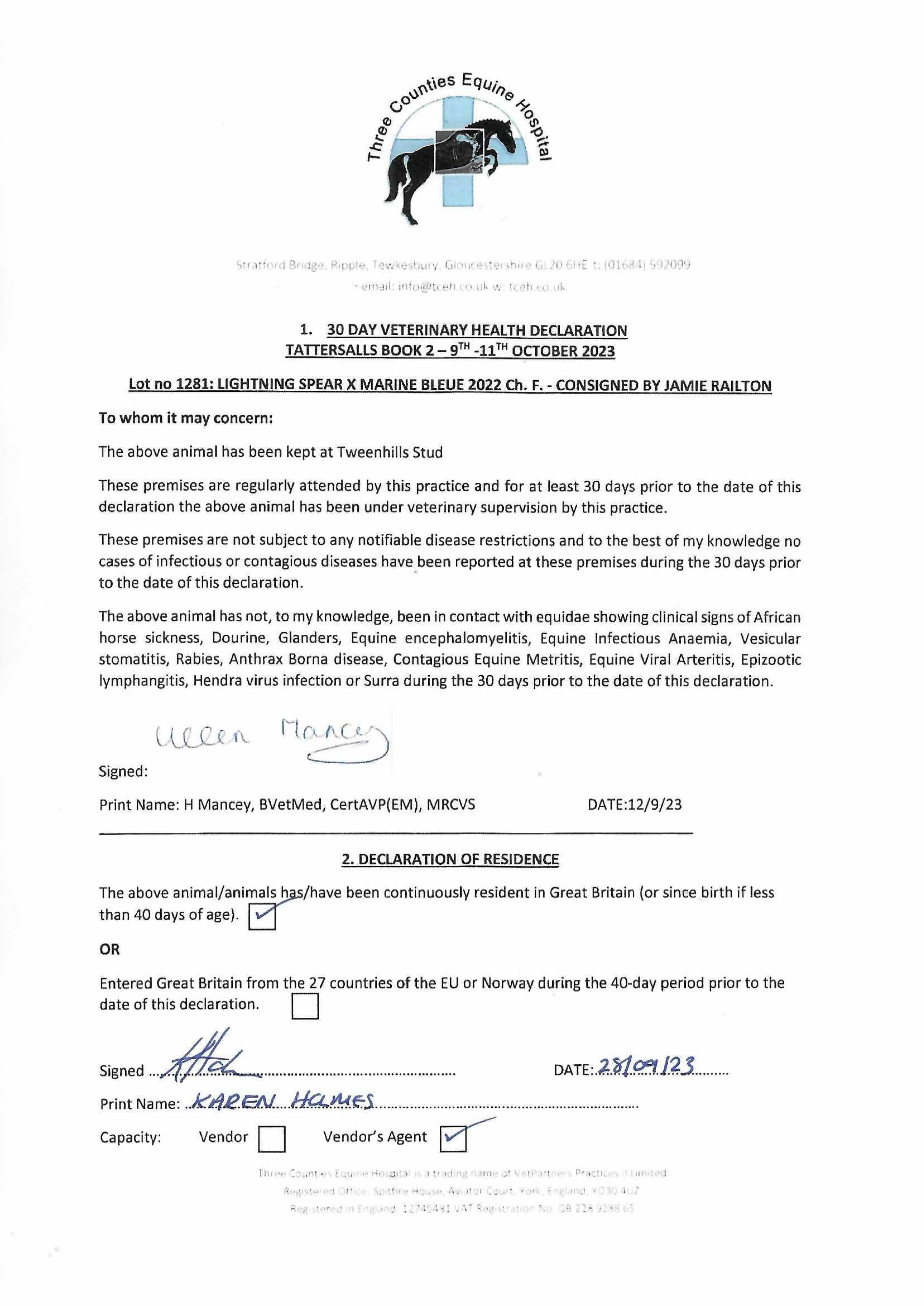 Consignor: Jamie Railton (Agent)