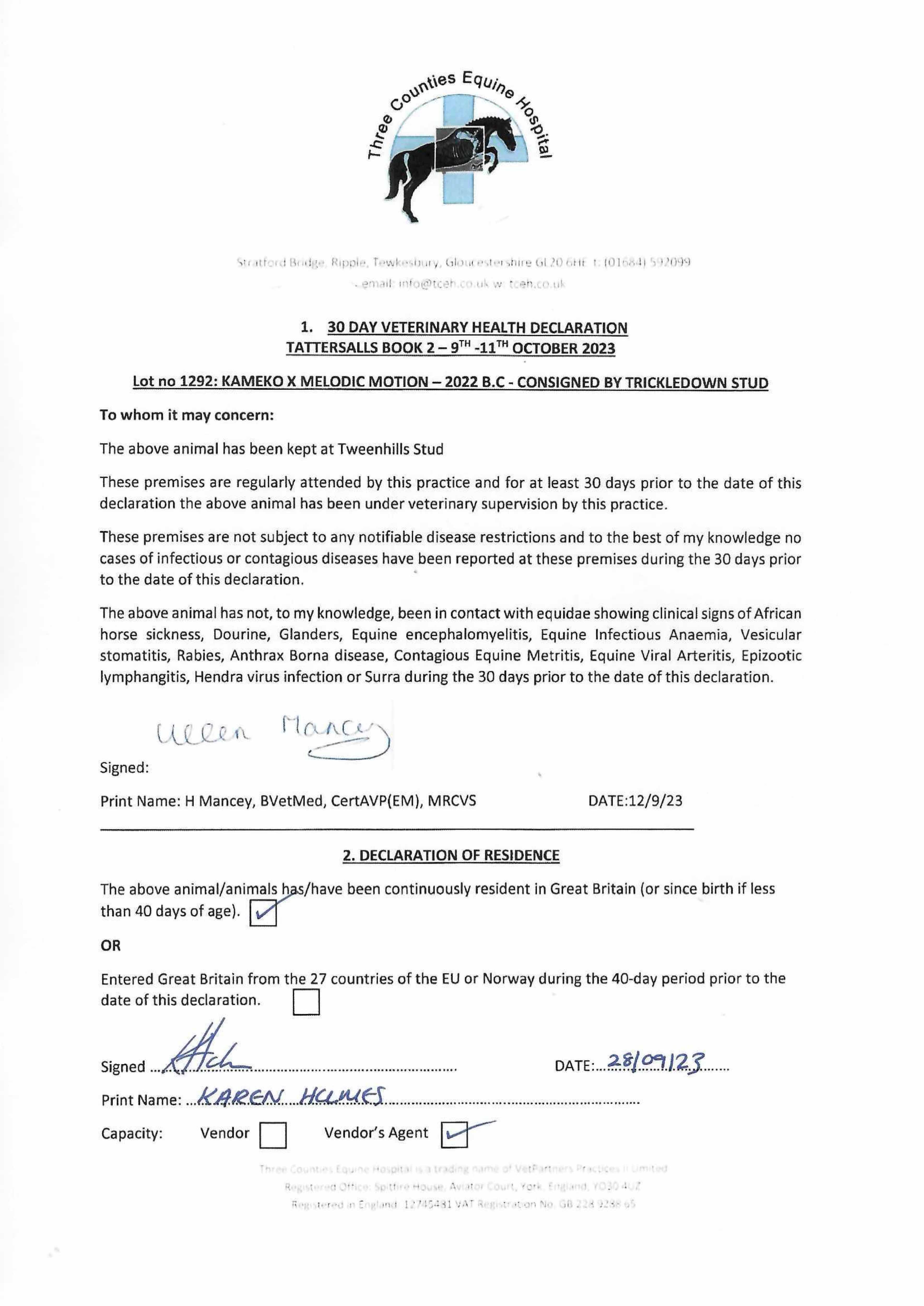 Consignor: Trickledown Stud