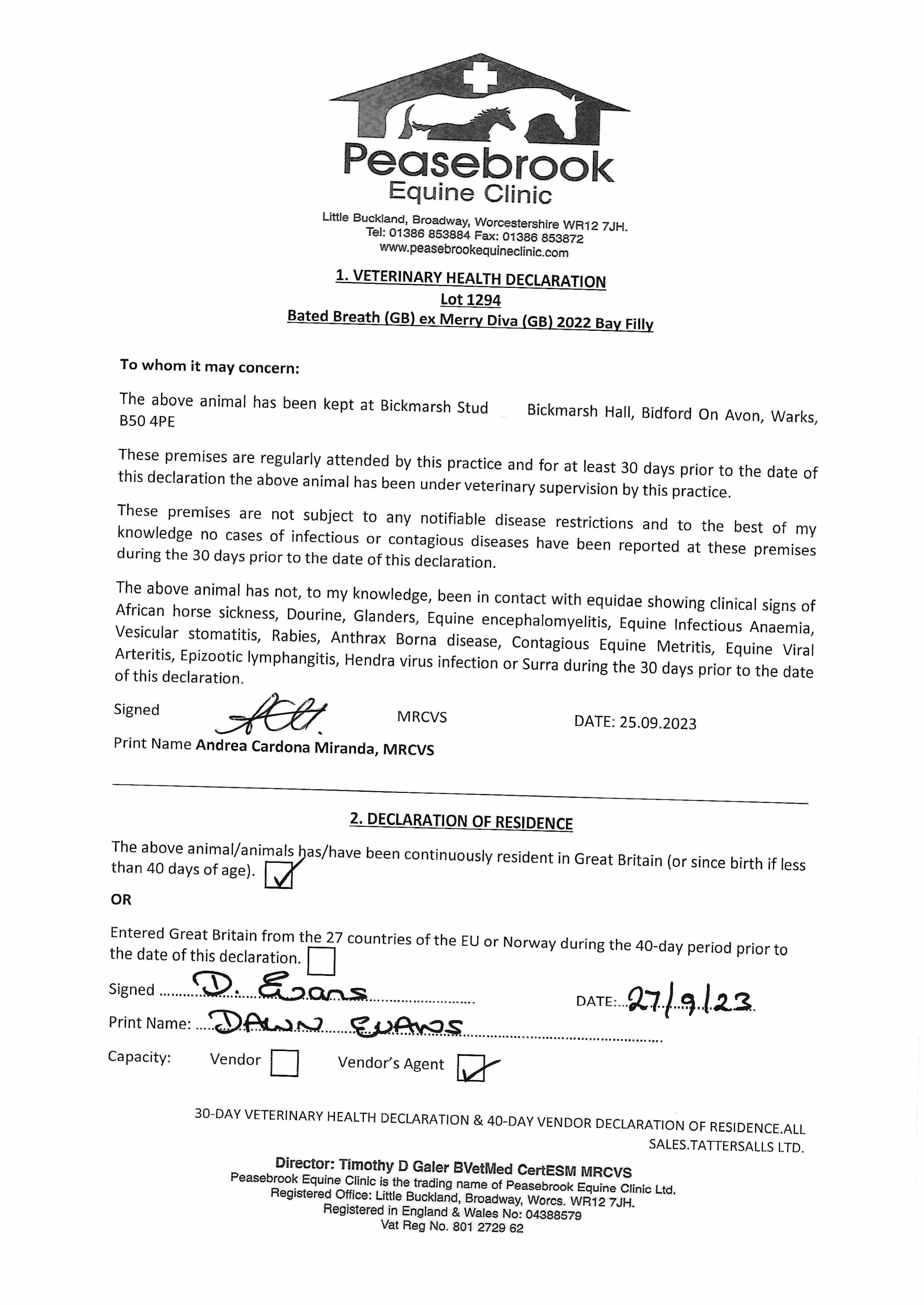 Consignor: Bickmarsh Stud