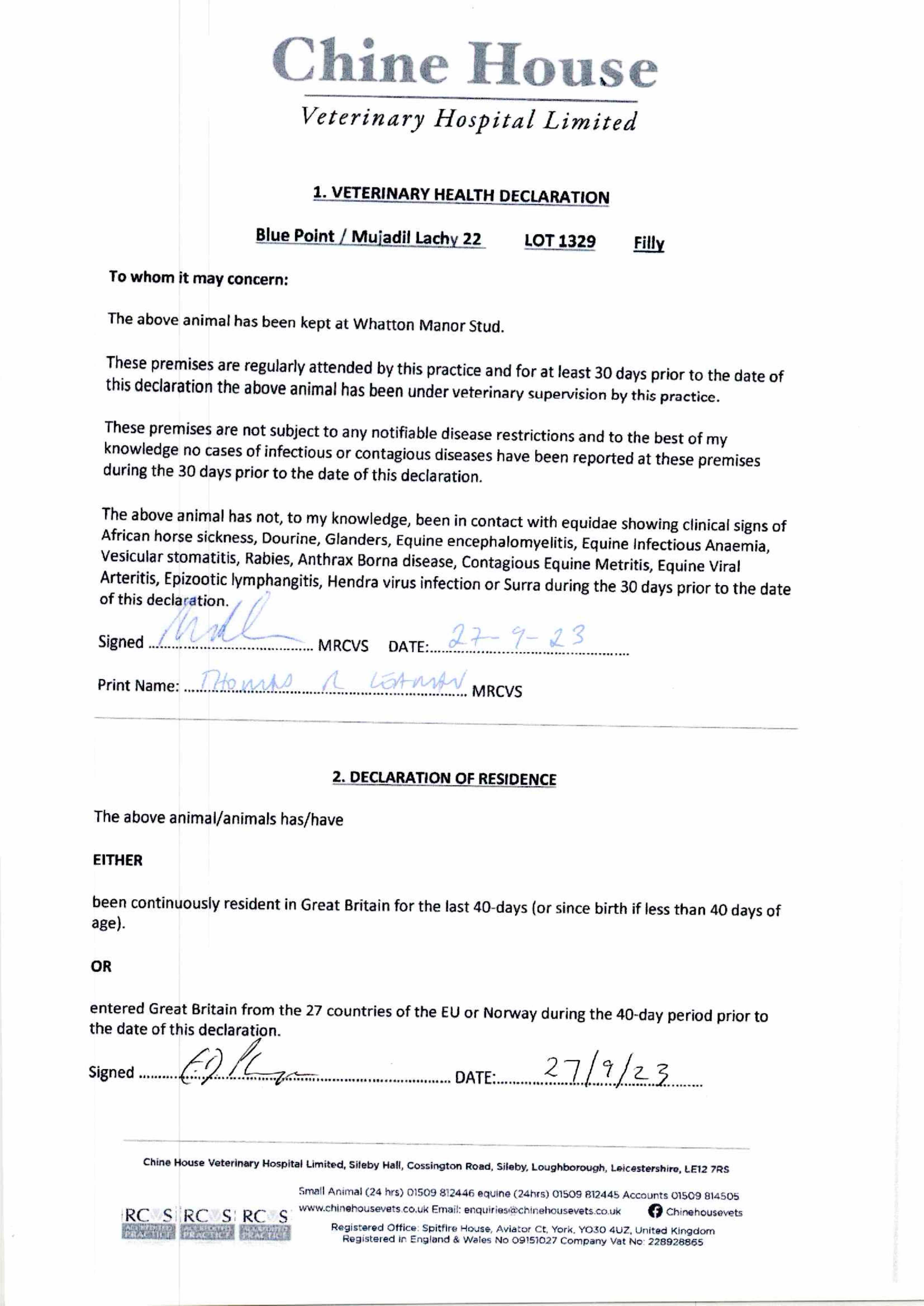 Consignor: Whatton Manor Stud