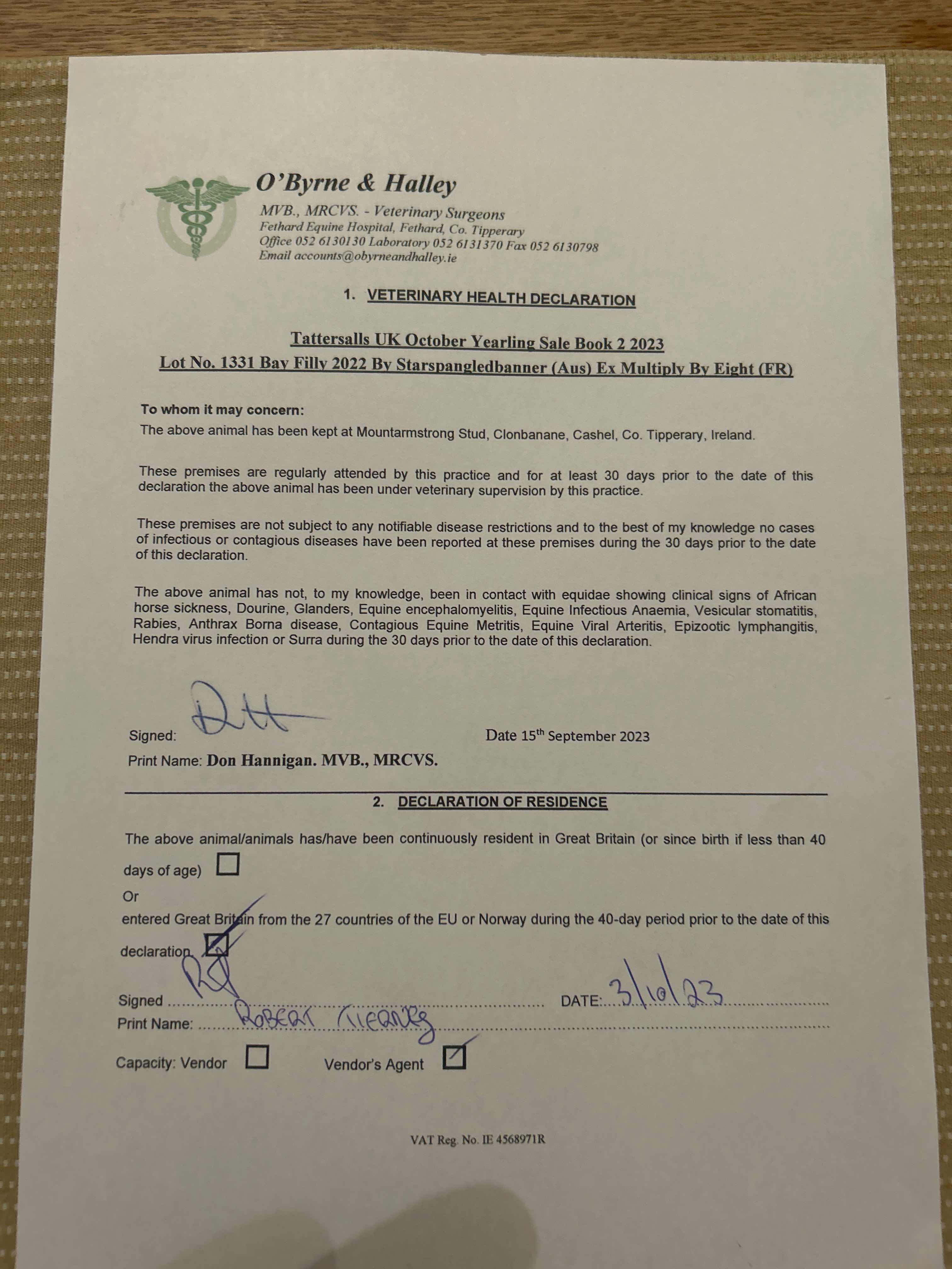 October Yearling Sale, Book 2 2024 lot 975 F. by Sioux Nation (USA) 2023, Mountarmstrong Stud, Ireland=>Avenue Bloodstock 100,000 gns