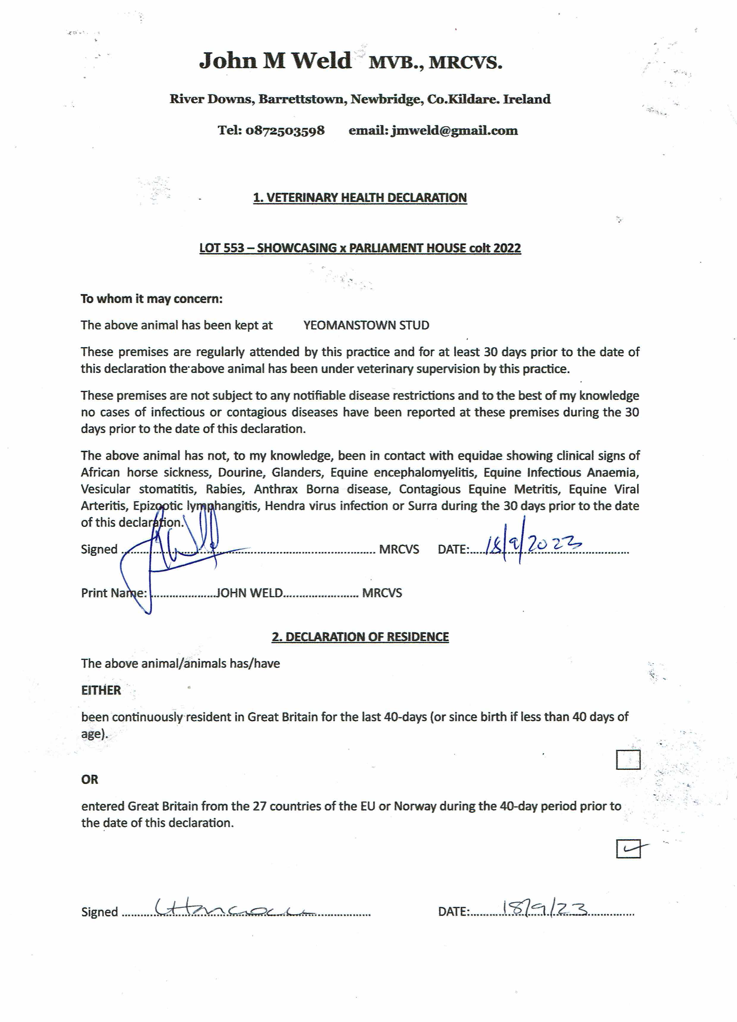 Consignor: Yeomanstown Stud, Ireland