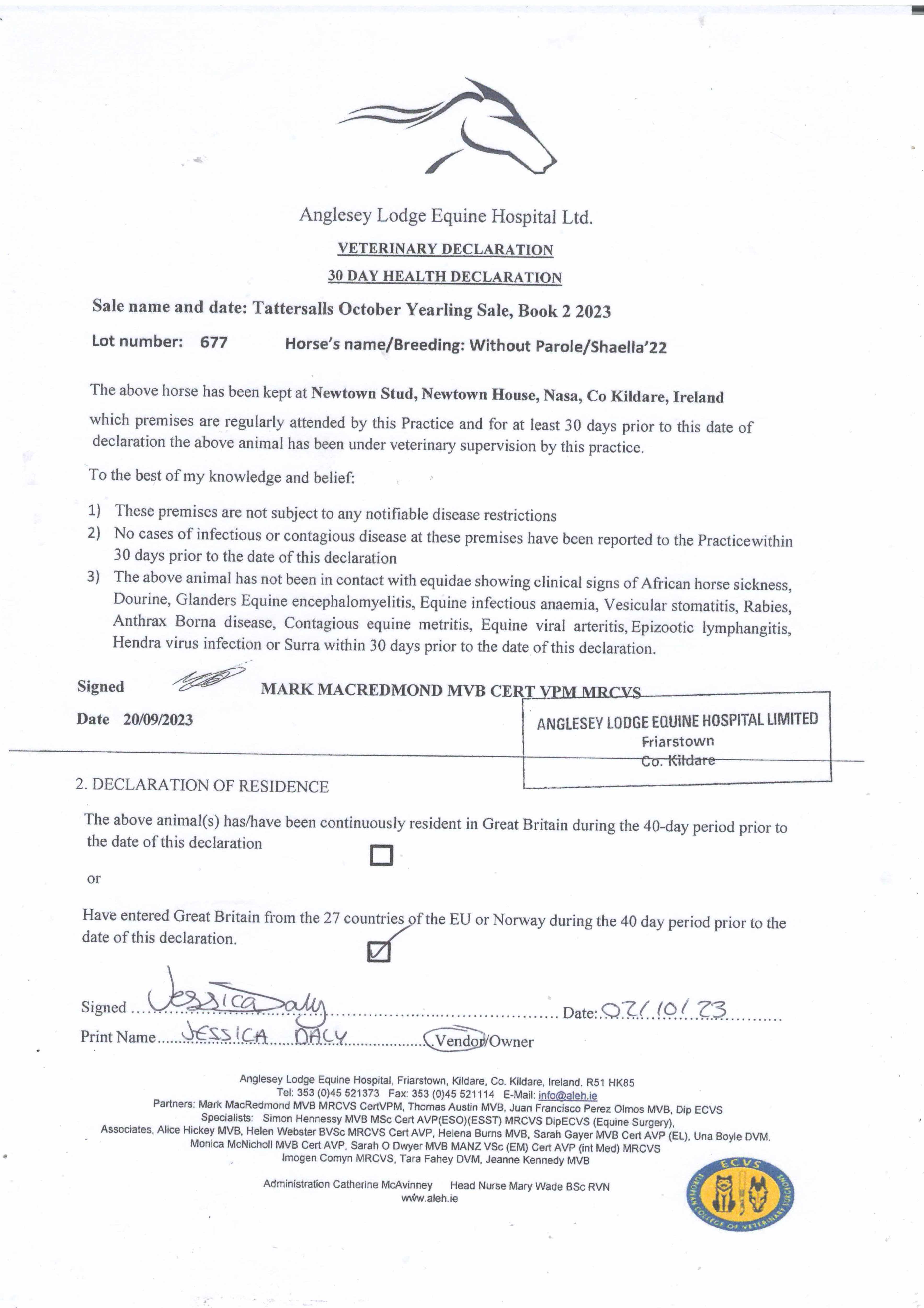 December Foal Sale 2023 lot 722 F. by Masar (IRE) 2023, Tinnakill House, Ireland=>Vendor 10,000 gns