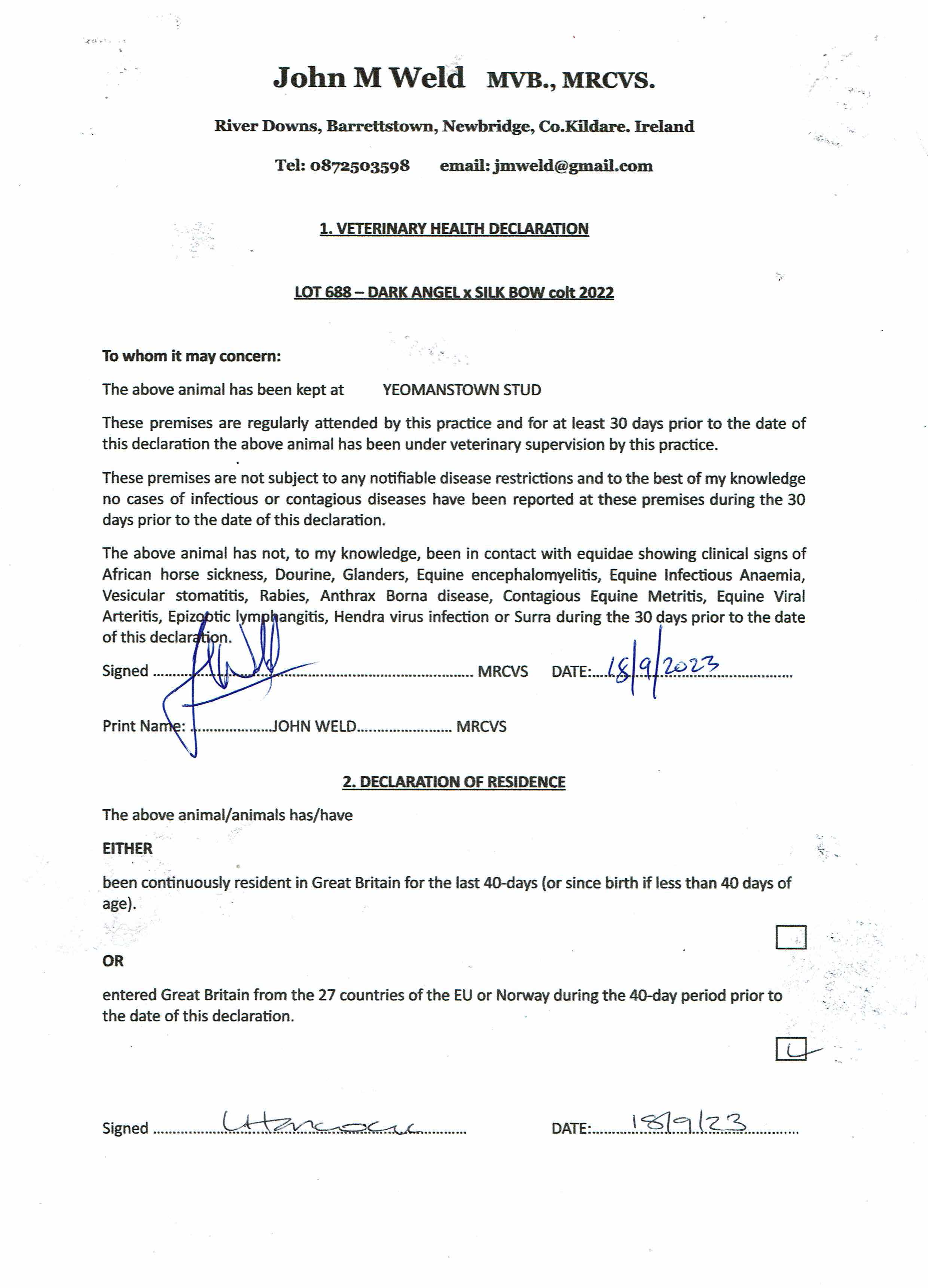 Consignor: Yeomanstown Stud, Ireland