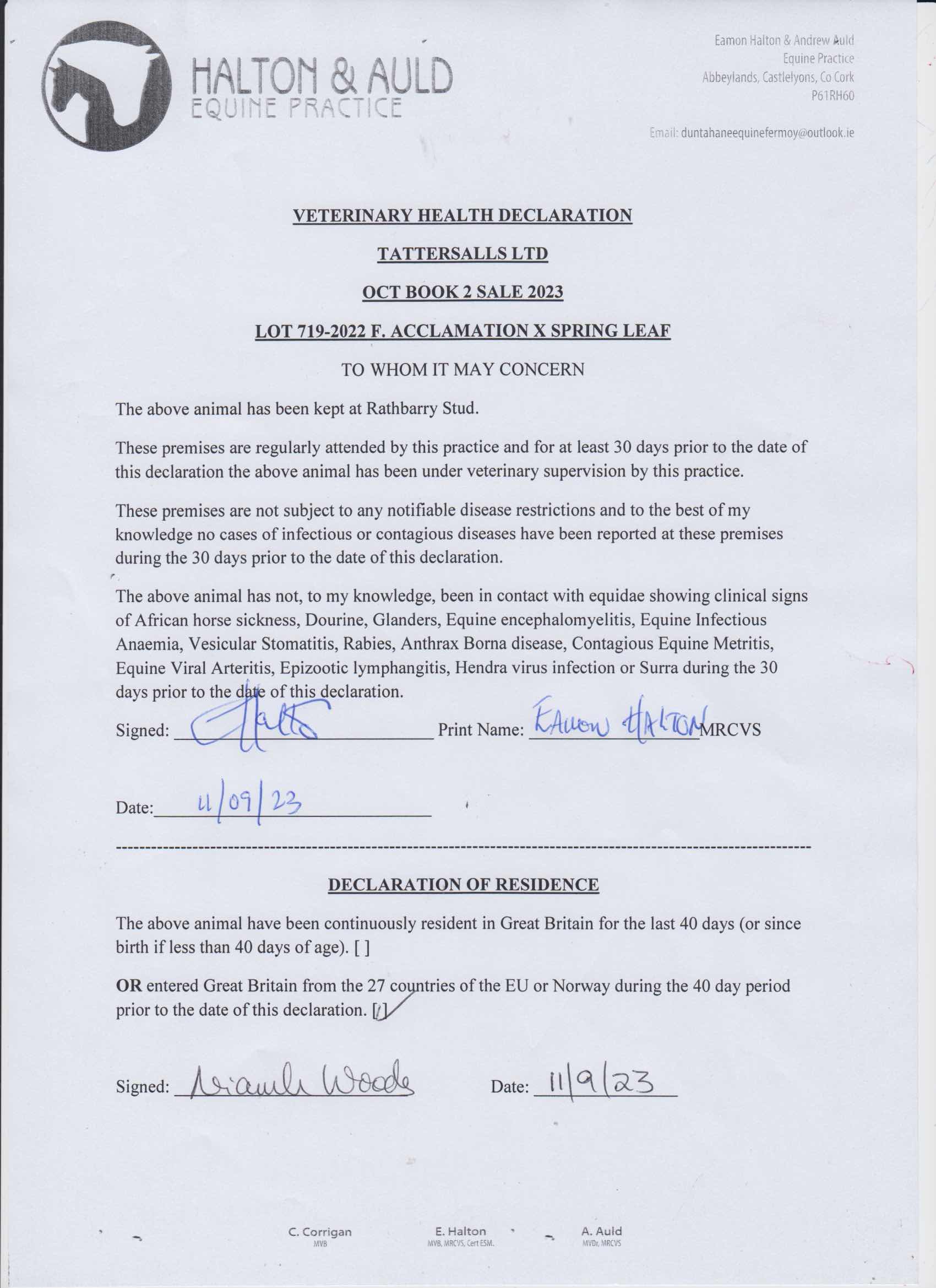 Consignor: Rathbarry Stud, Ireland