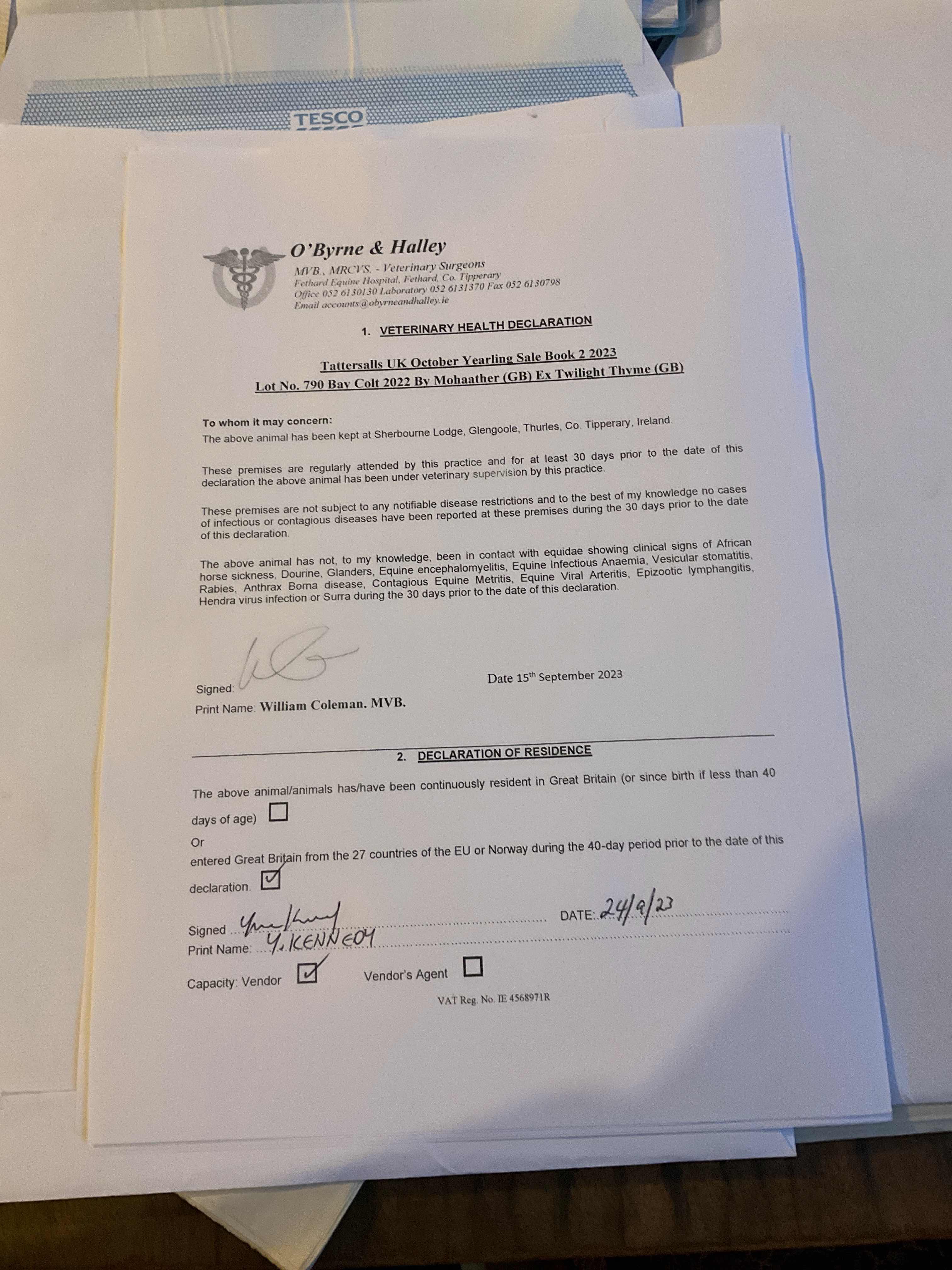 Consignor: Sherbourne Lodge, Ireland