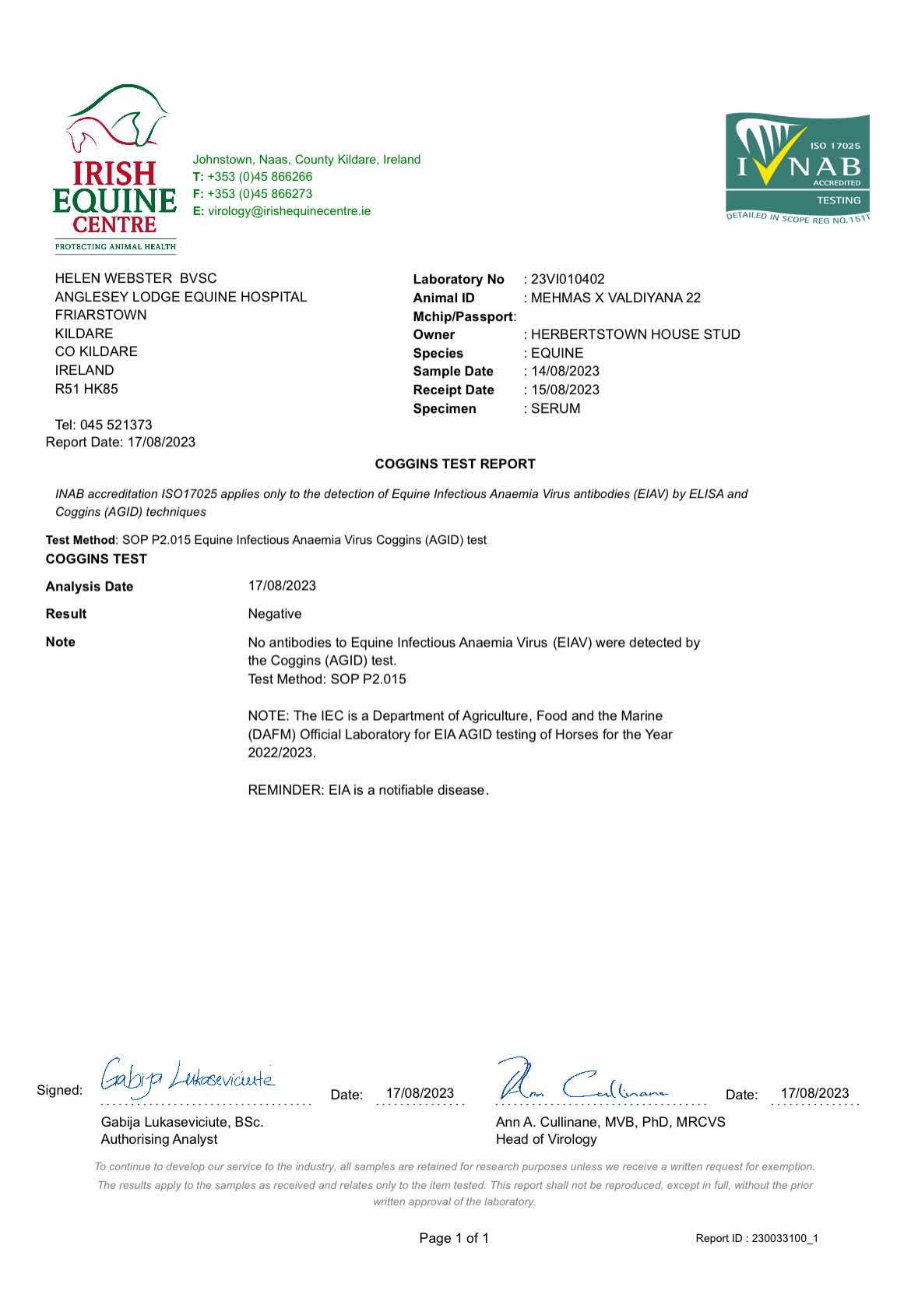 Consignor: Herbertstown House Stud (Co. Kildare), Ireland