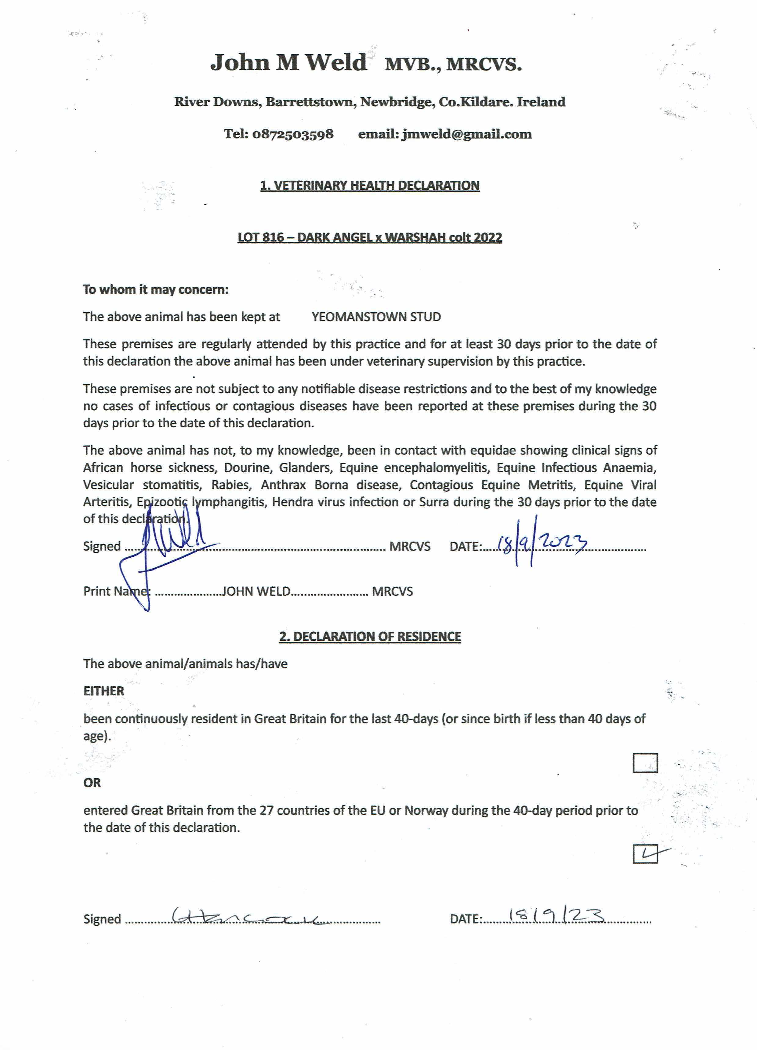 Consignor: Yeomanstown Stud, Ireland