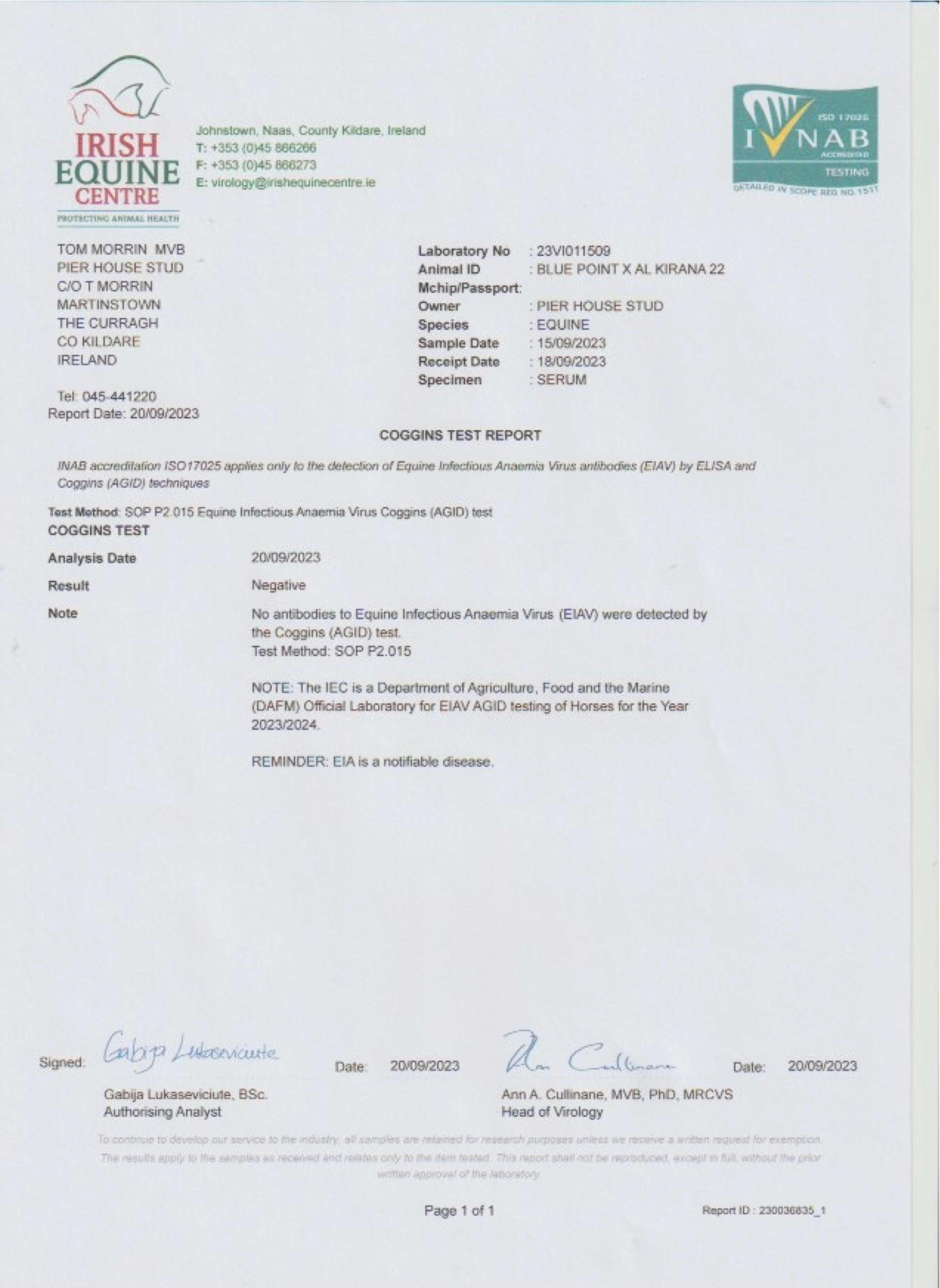 Consignor: Pier House Stud, Ireland