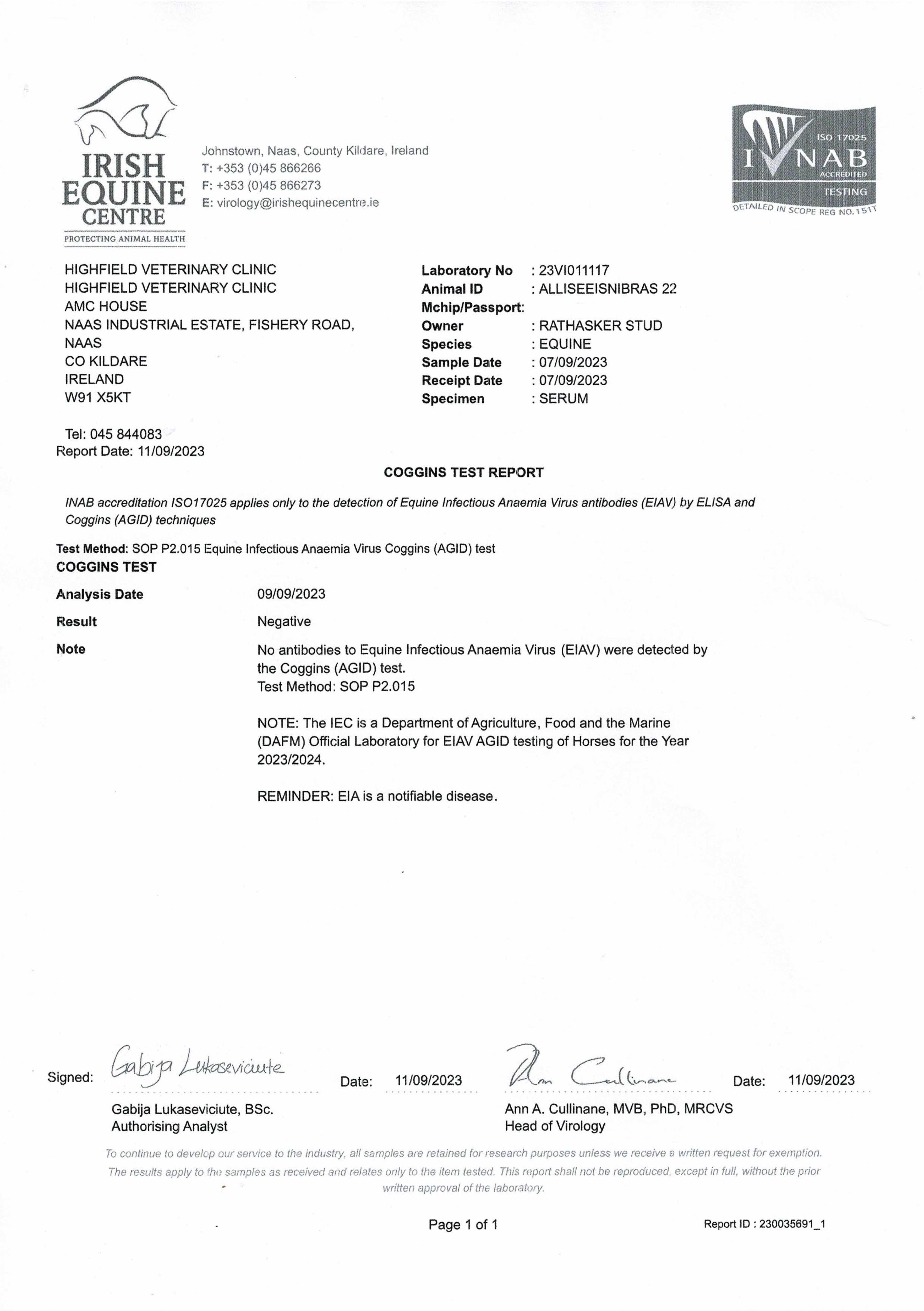 Consignor: Rathasker Stud, Ireland
