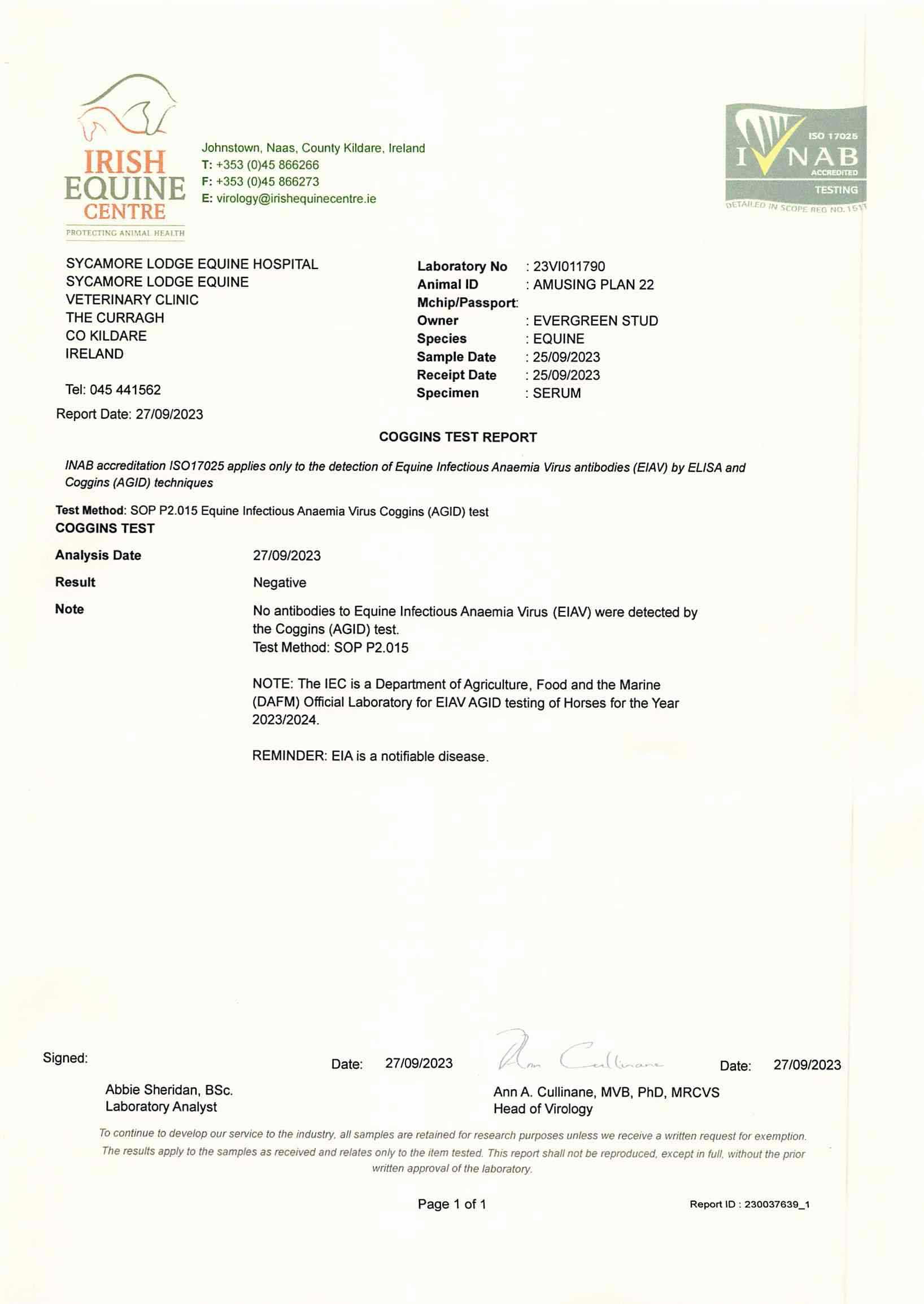 Consignor: Evergreen Stud, Ireland