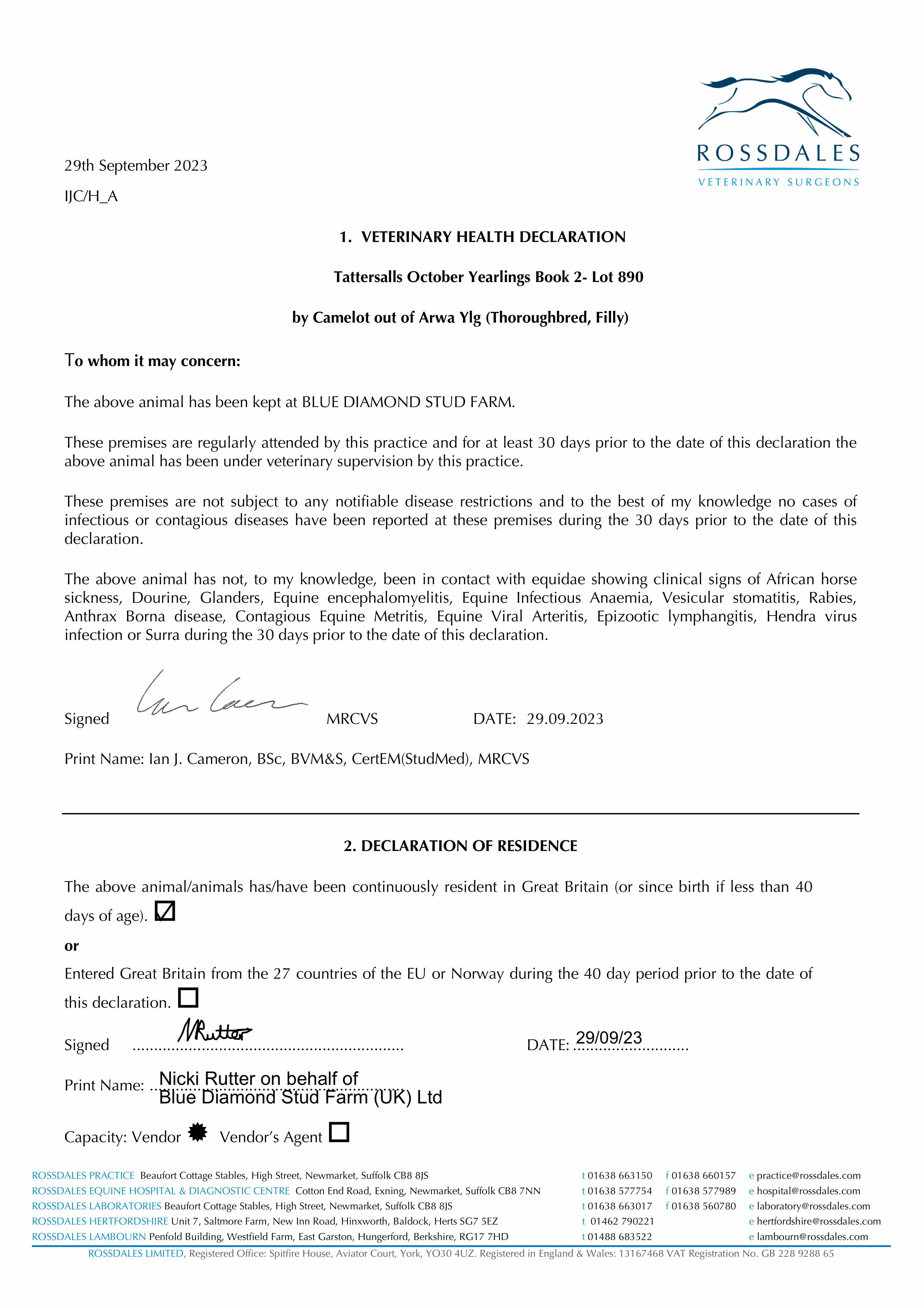 Consignor: Blue Diamond Stud Farm (UK) Ltd.