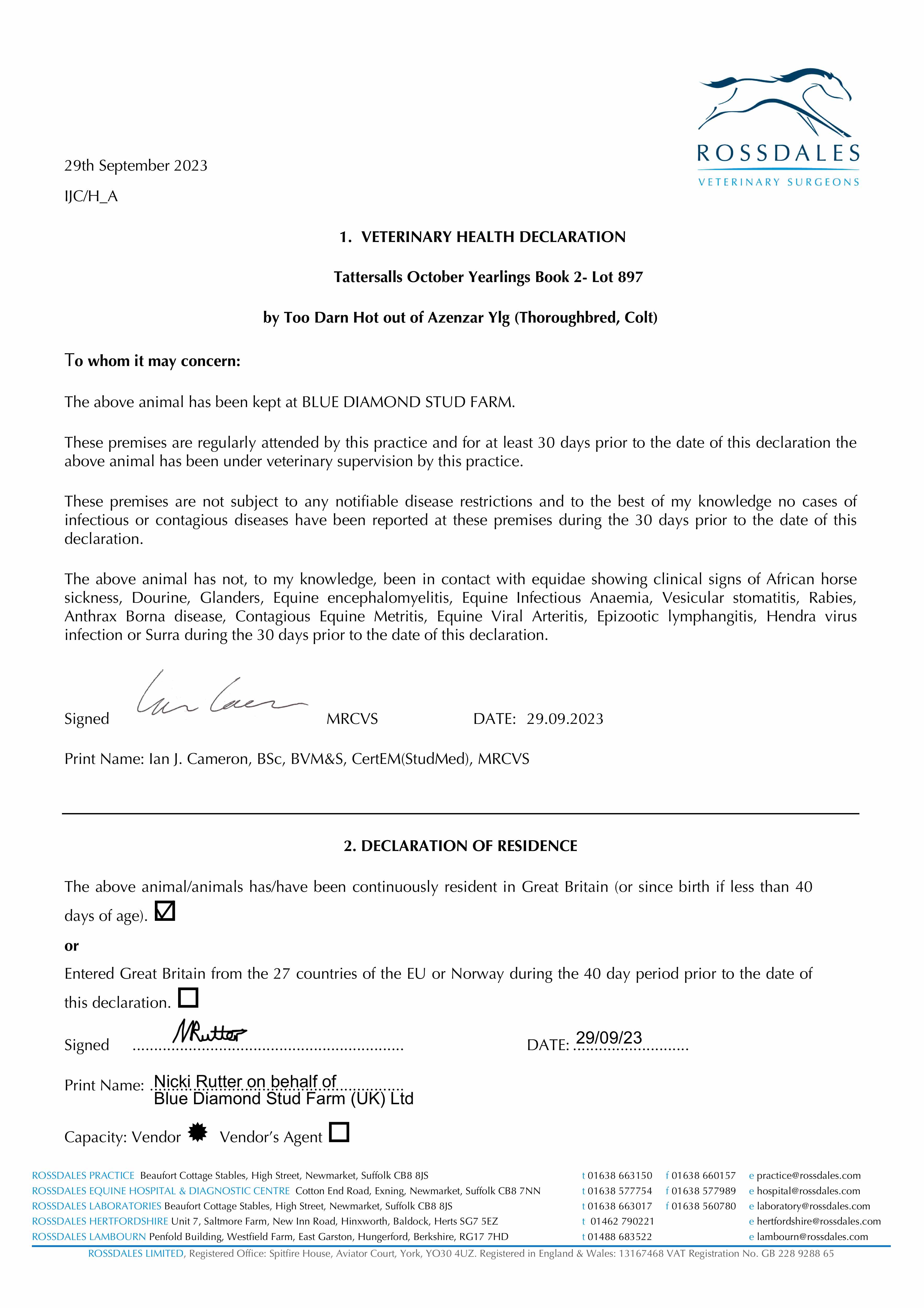 Consignor: Blue Diamond Stud Farm (UK) Ltd.