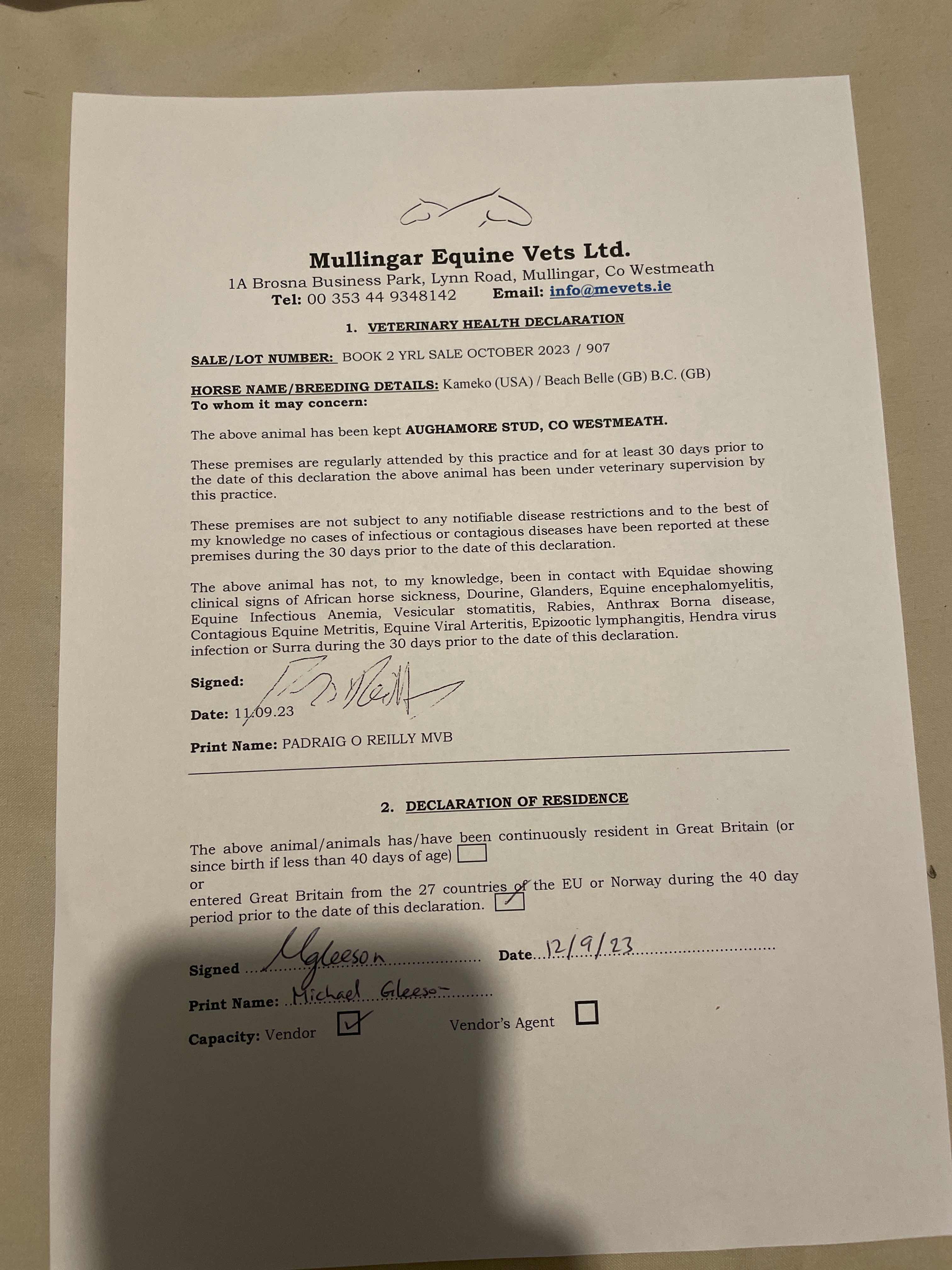 Consignor: Aughamore Stud, Ireland