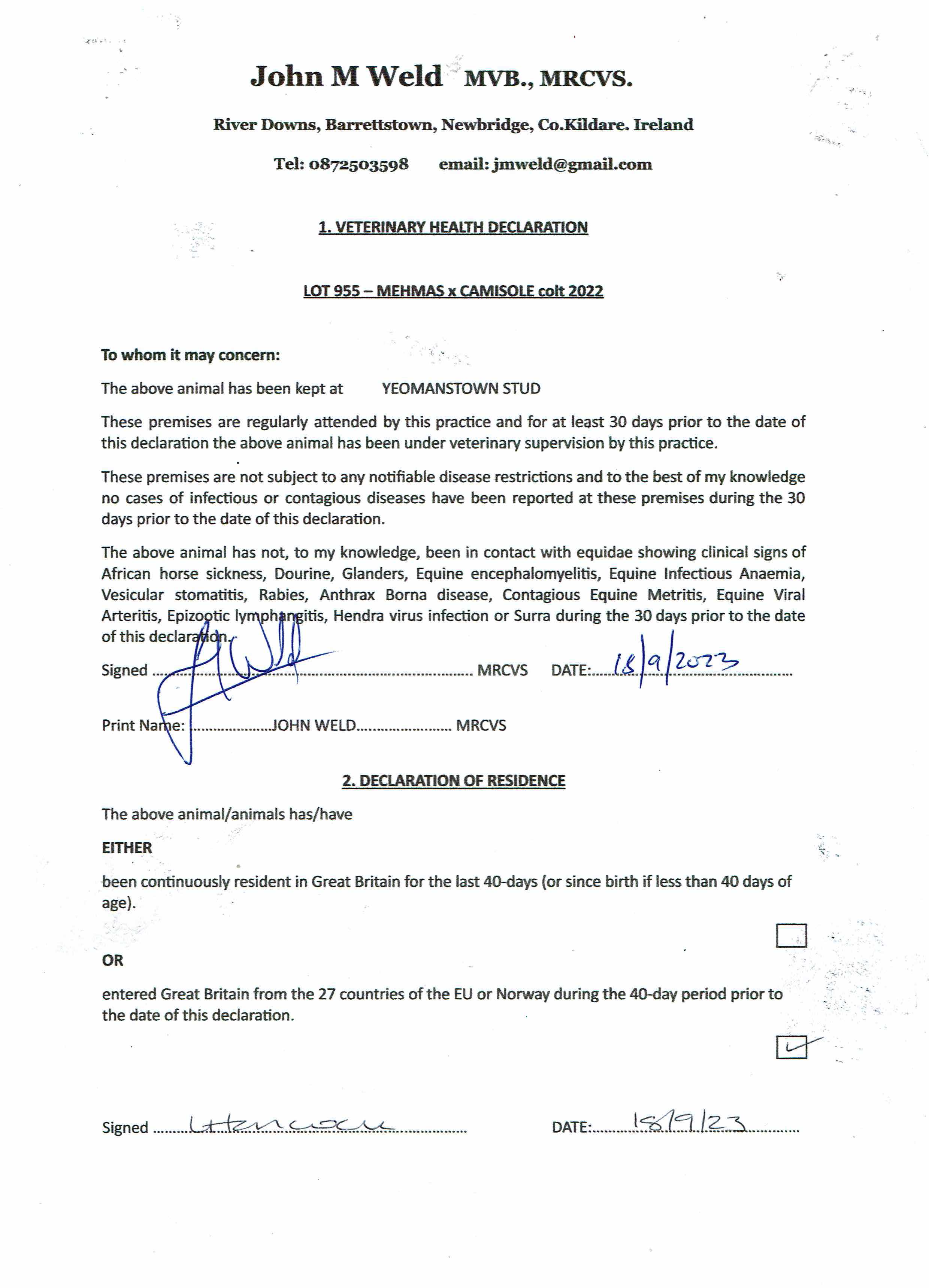 Consignor: Yeomanstown Stud, Ireland