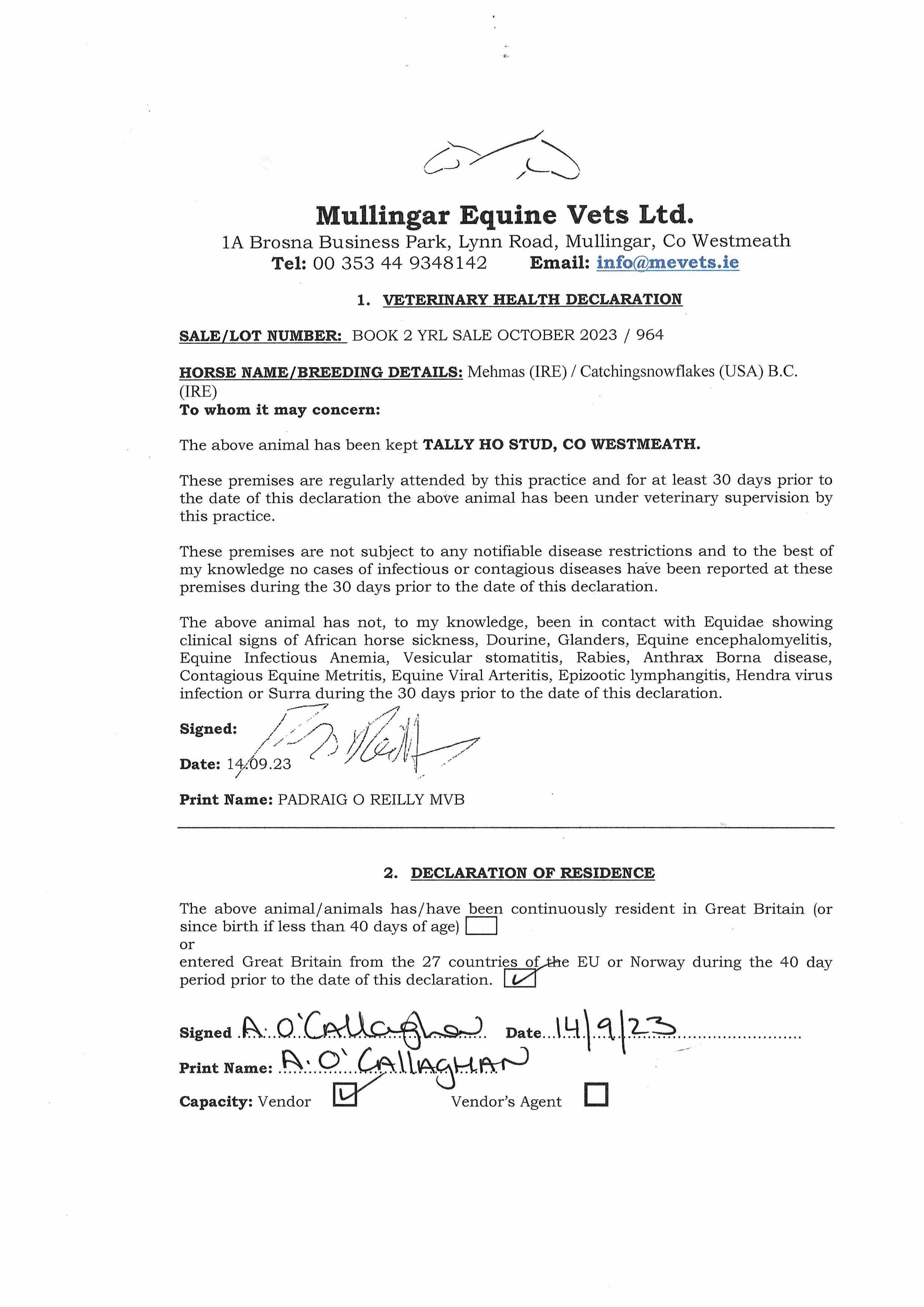 Consignor: Tally-Ho Stud, Ireland