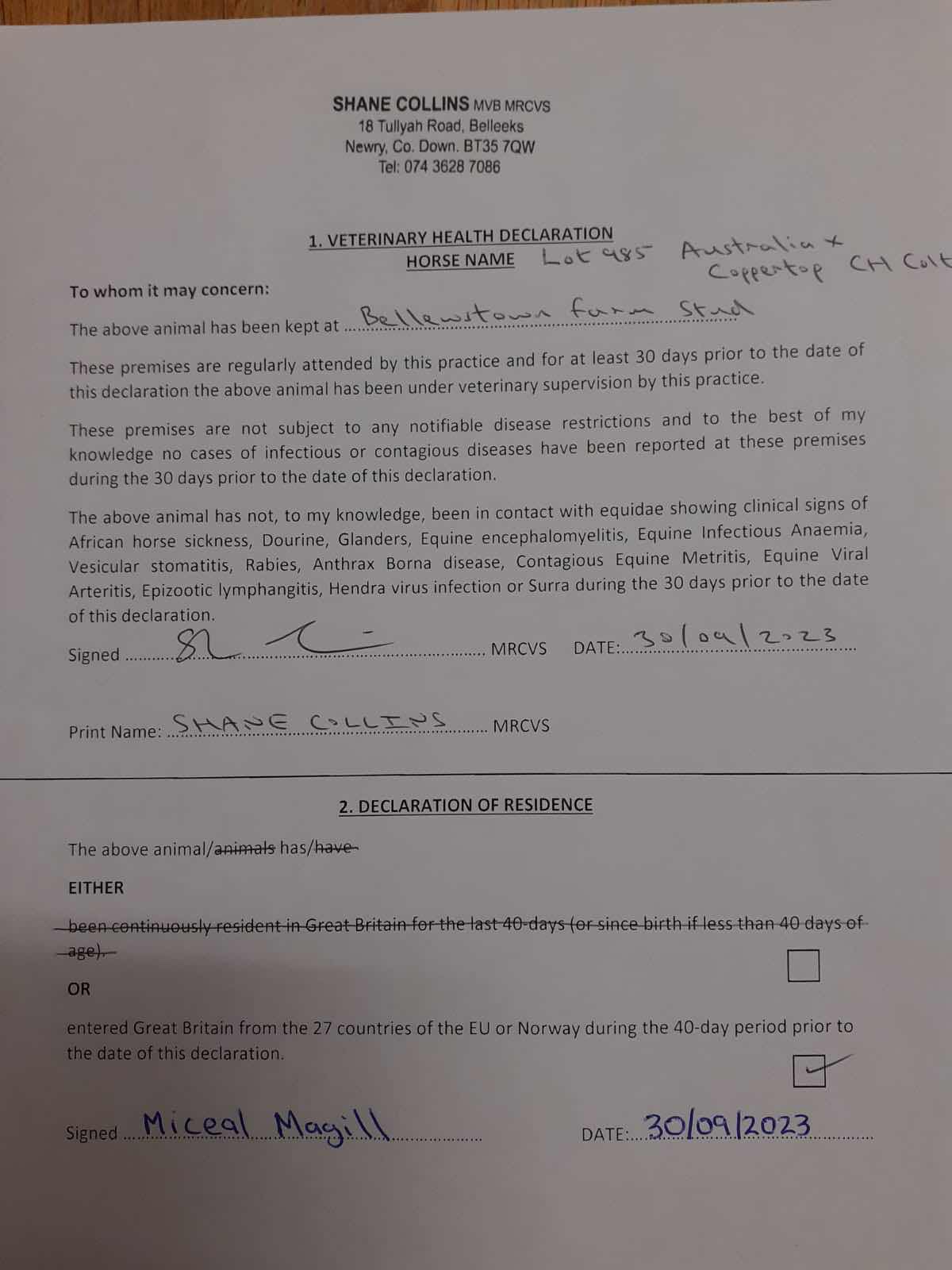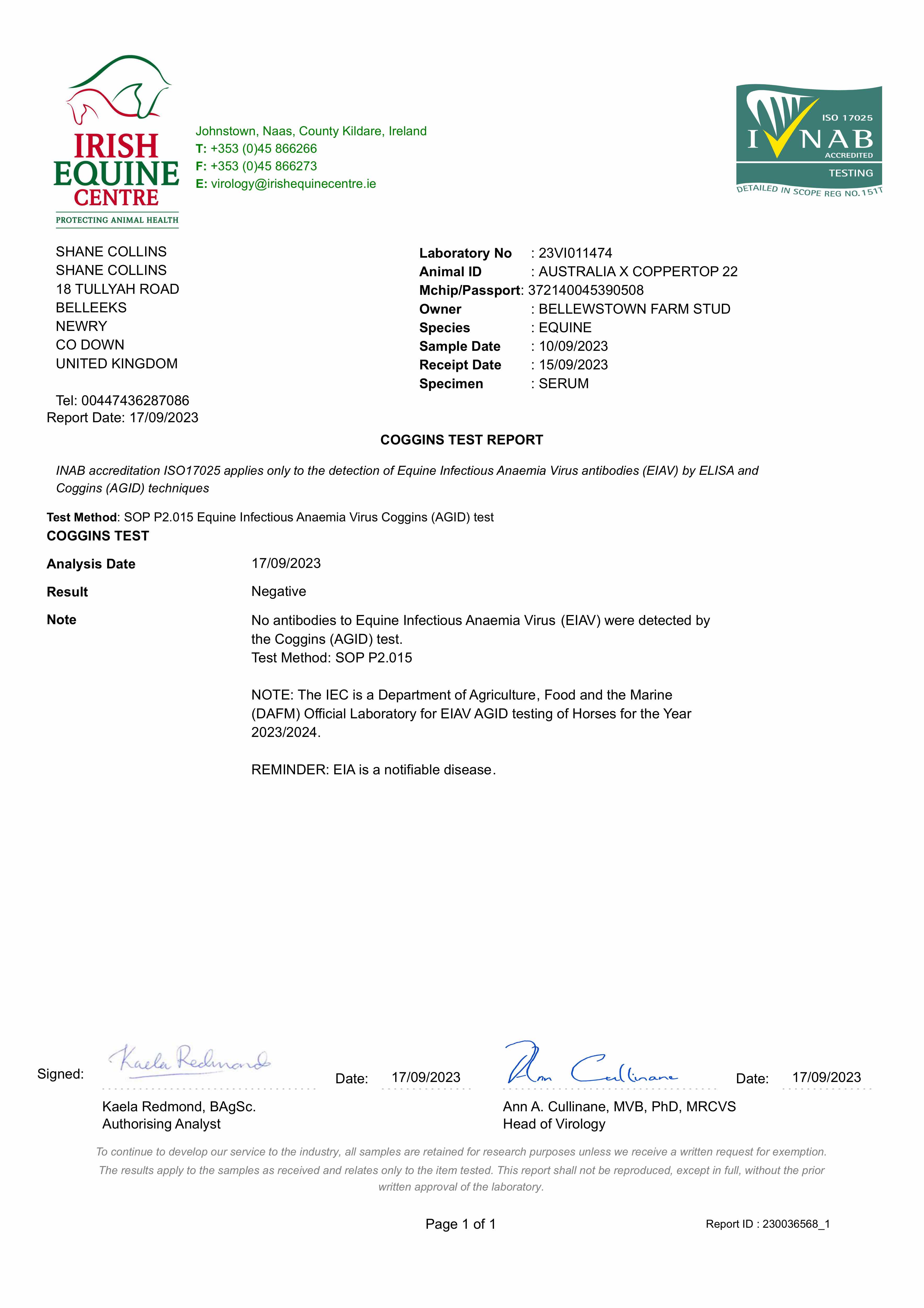 Consignor: Bellewstown Farm Stud