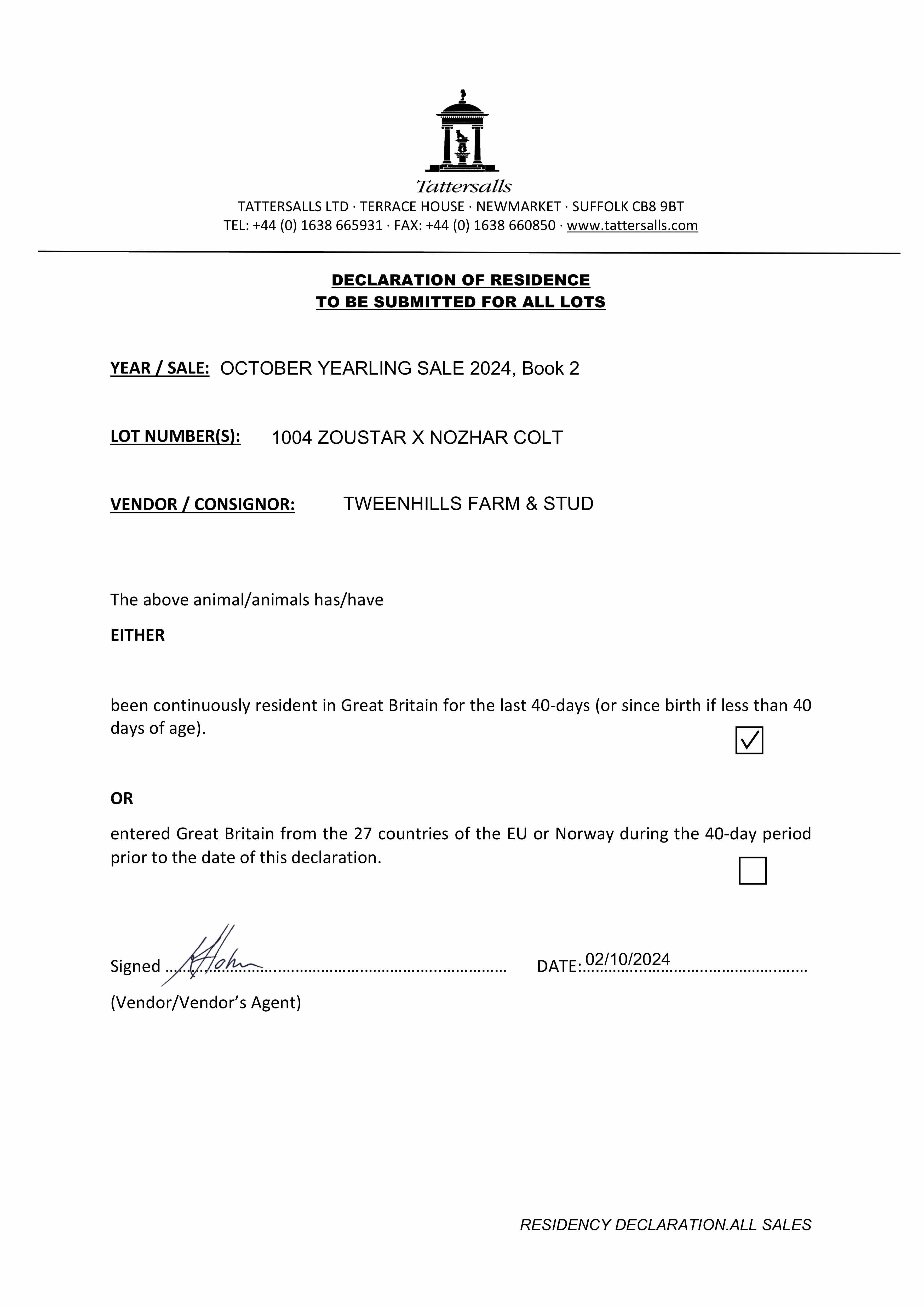 October Yearling Sale, Book 2 2025 lot 1054 F. 2024, Tweenhills=>Dwayne Woods 82,000 gns