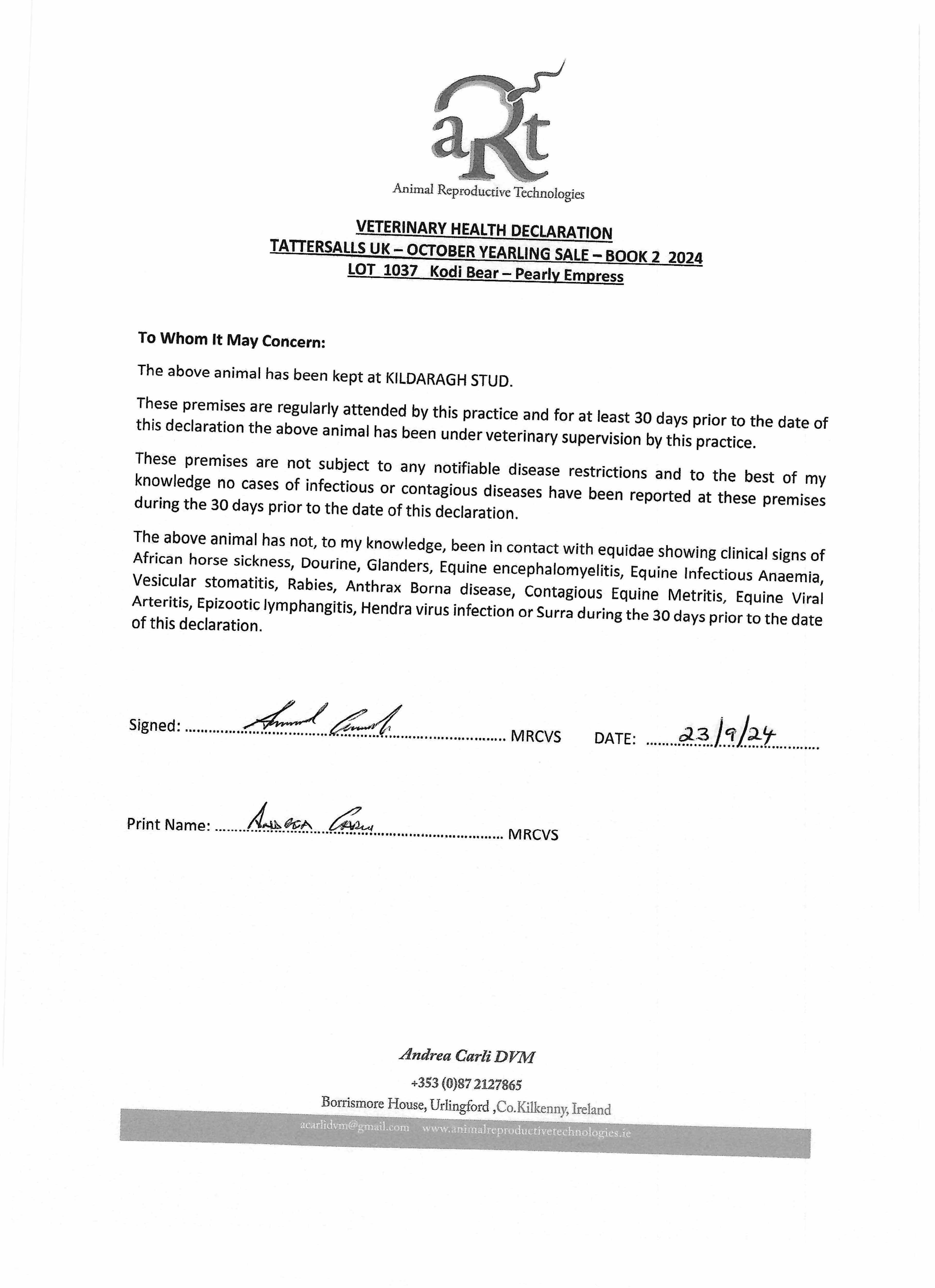 October Yearling Sale, Book 2 2025 lot 1073 C. by State of Rest (IRE) 2024, Kildaragh Stud, Ireland=>Roger Varian 45,000 gns