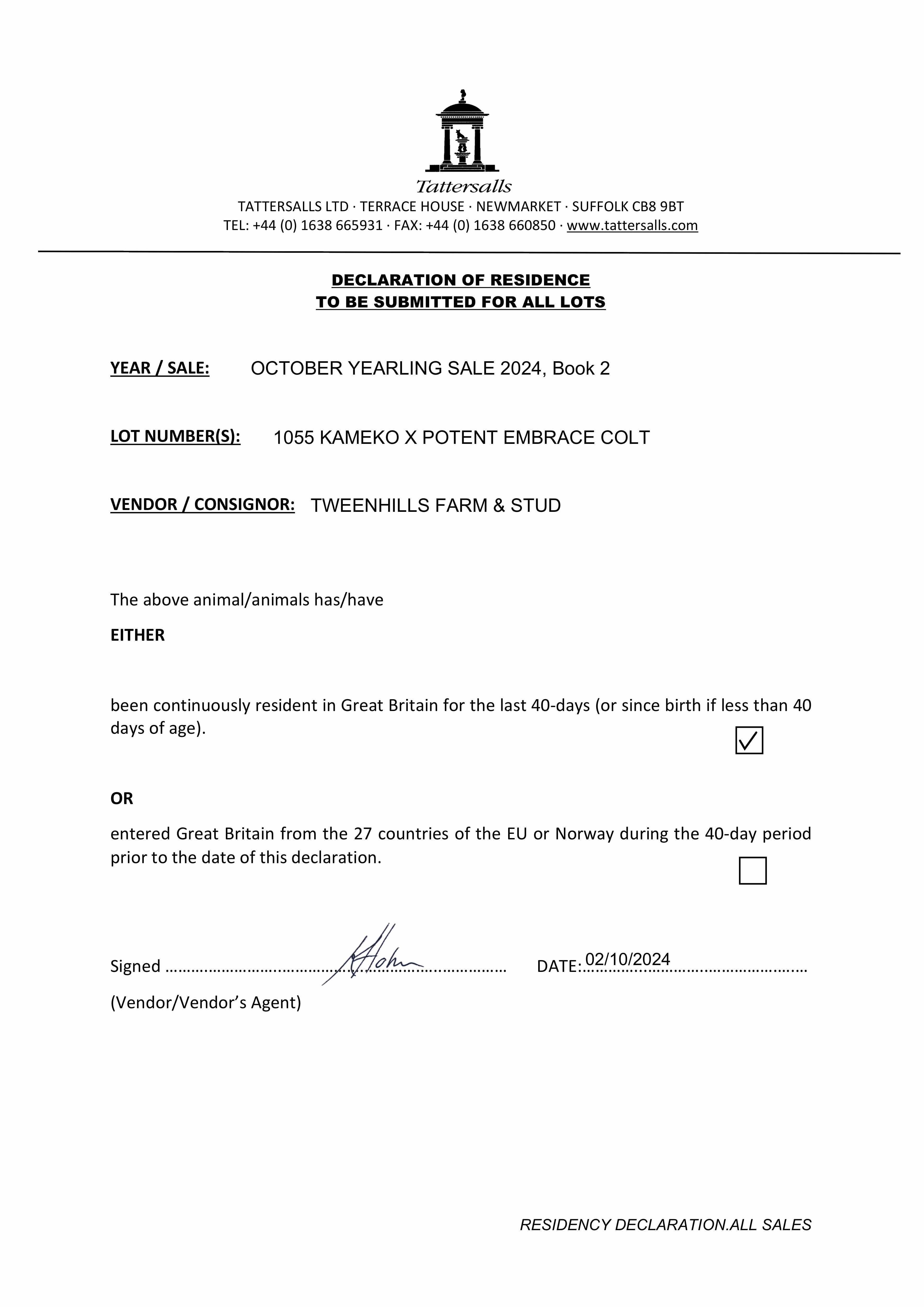Consignor: Tweenhills Farm & Stud