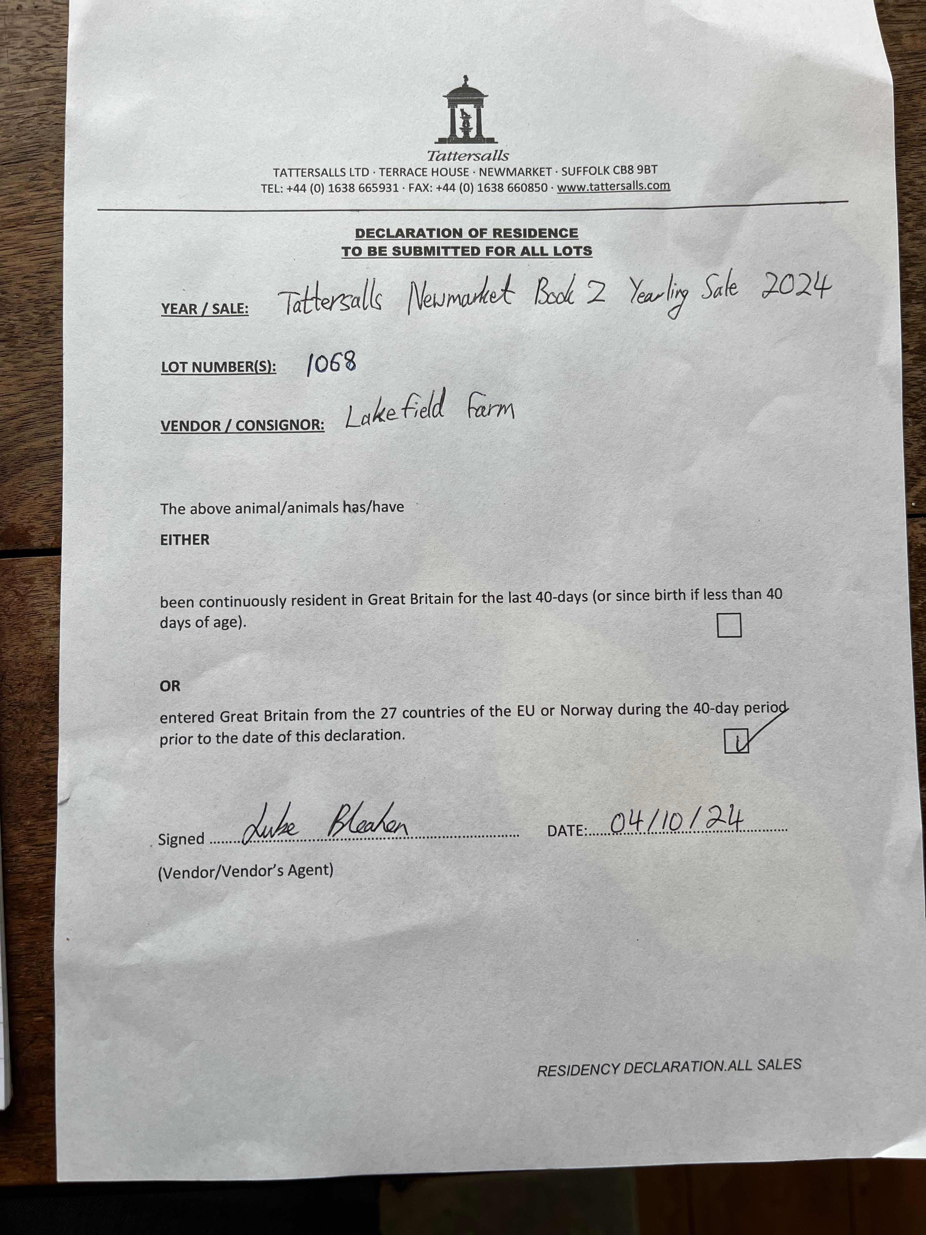 Consignor: Lakefield Farm, Ireland