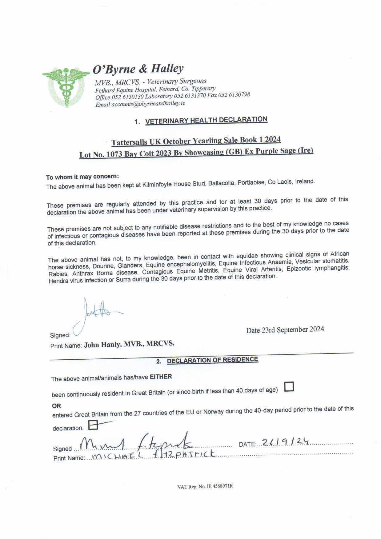 Consignor: Kilminfoyle House Stud, Ireland (Agent)
