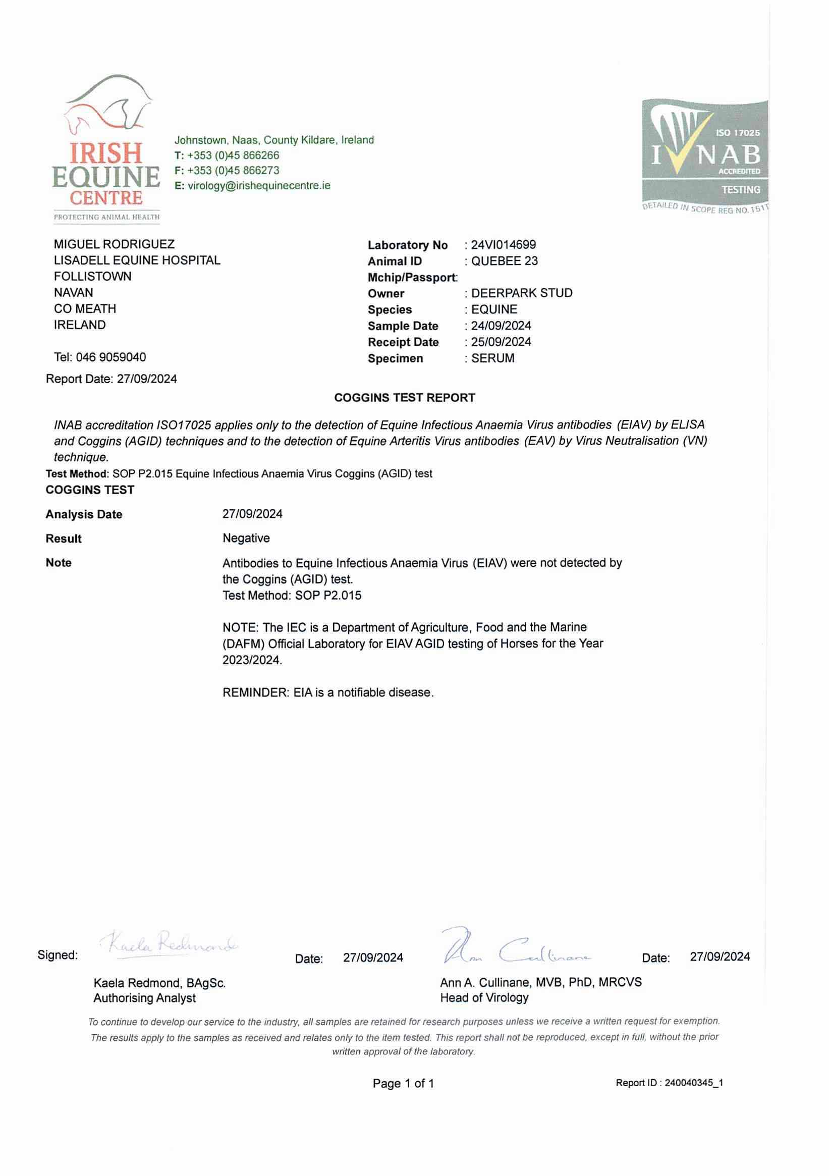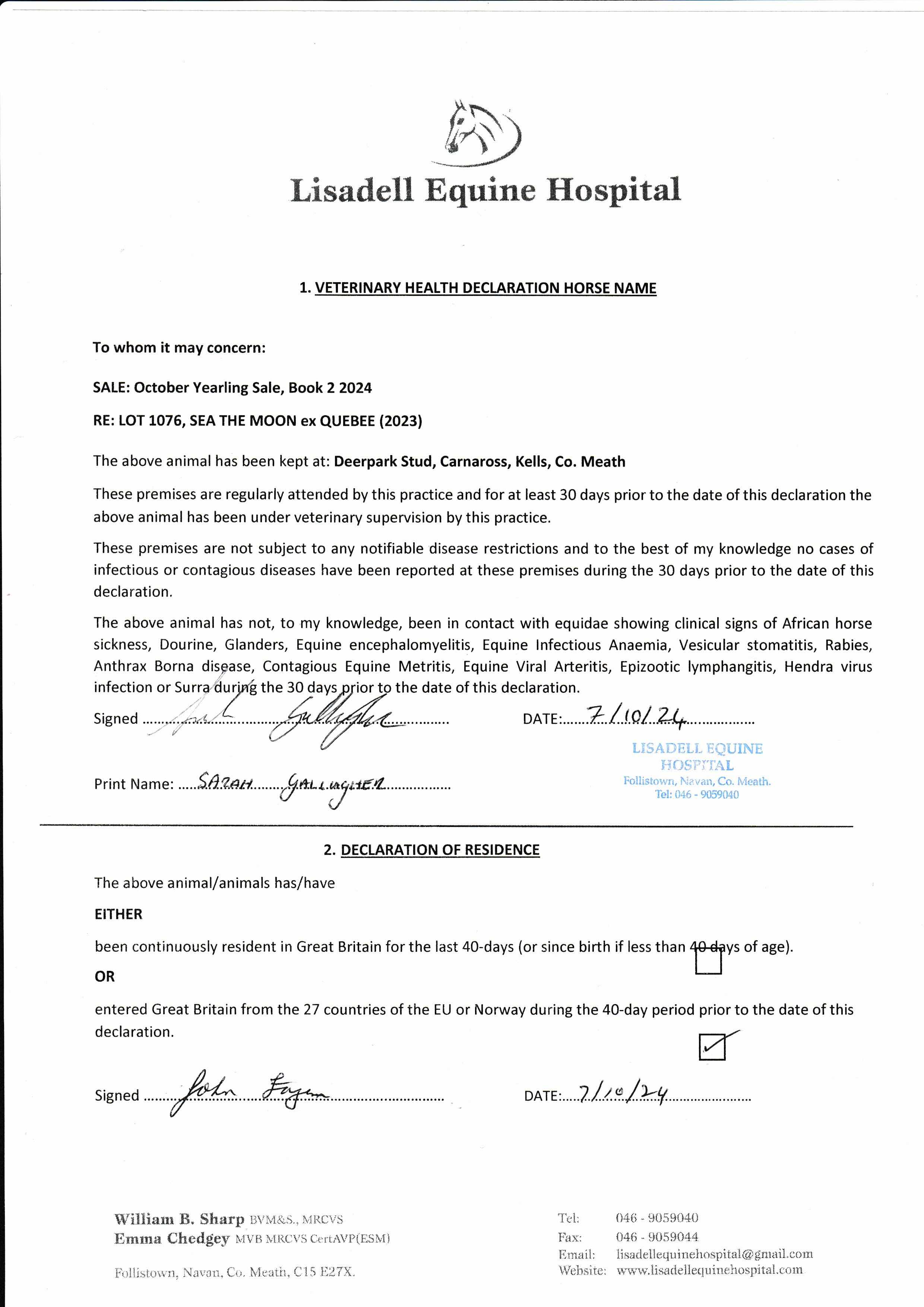 Consignor: Deerpark Stud, Ireland