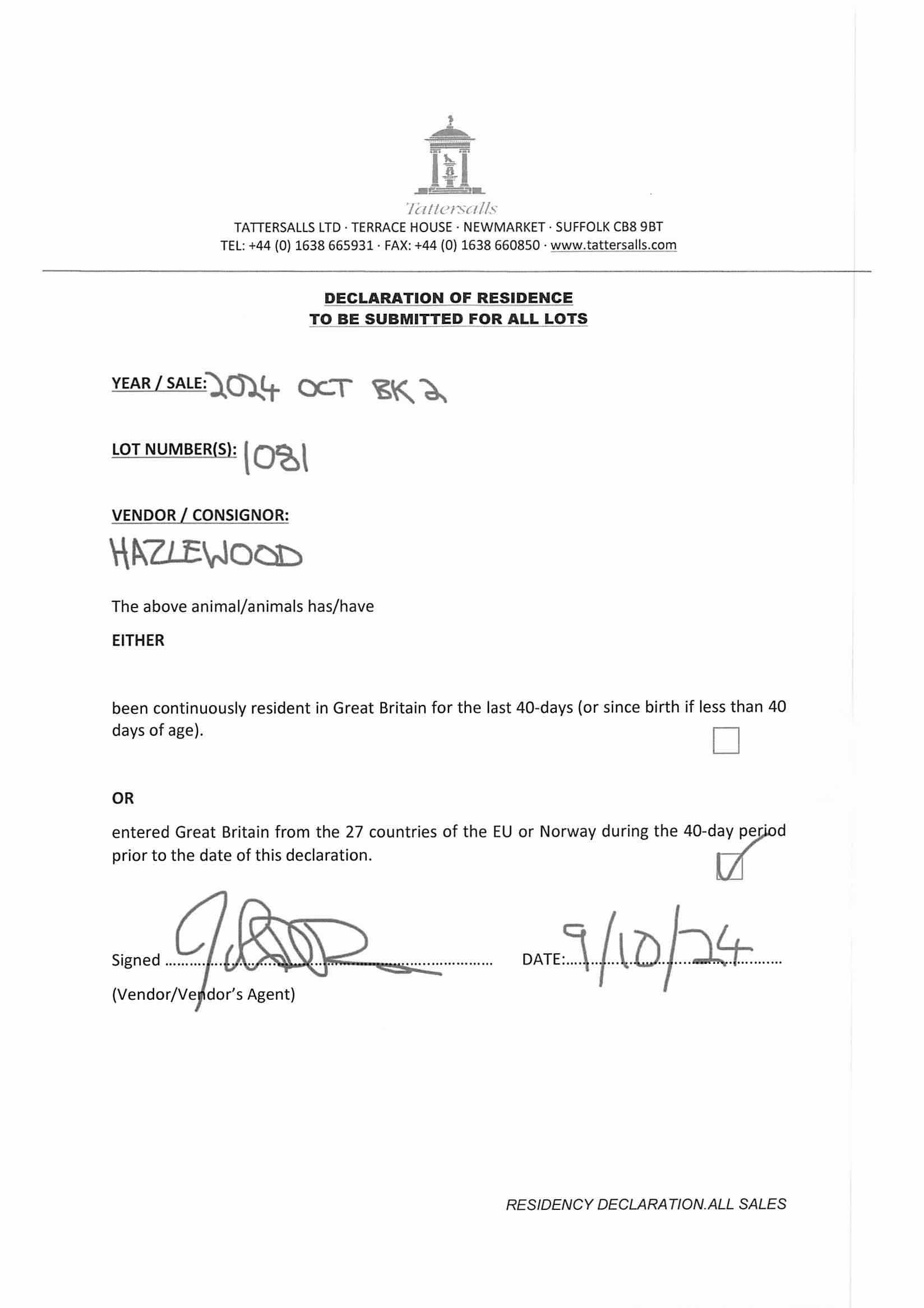 Consignor: Hazelwood Bloodstock