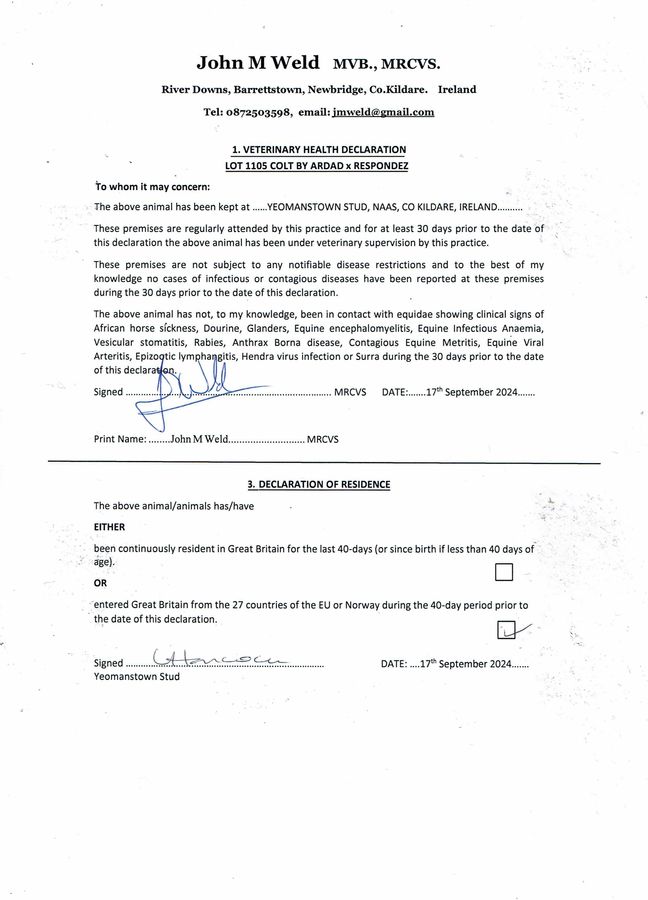 Consignor: Yeomanstown Stud, Ireland