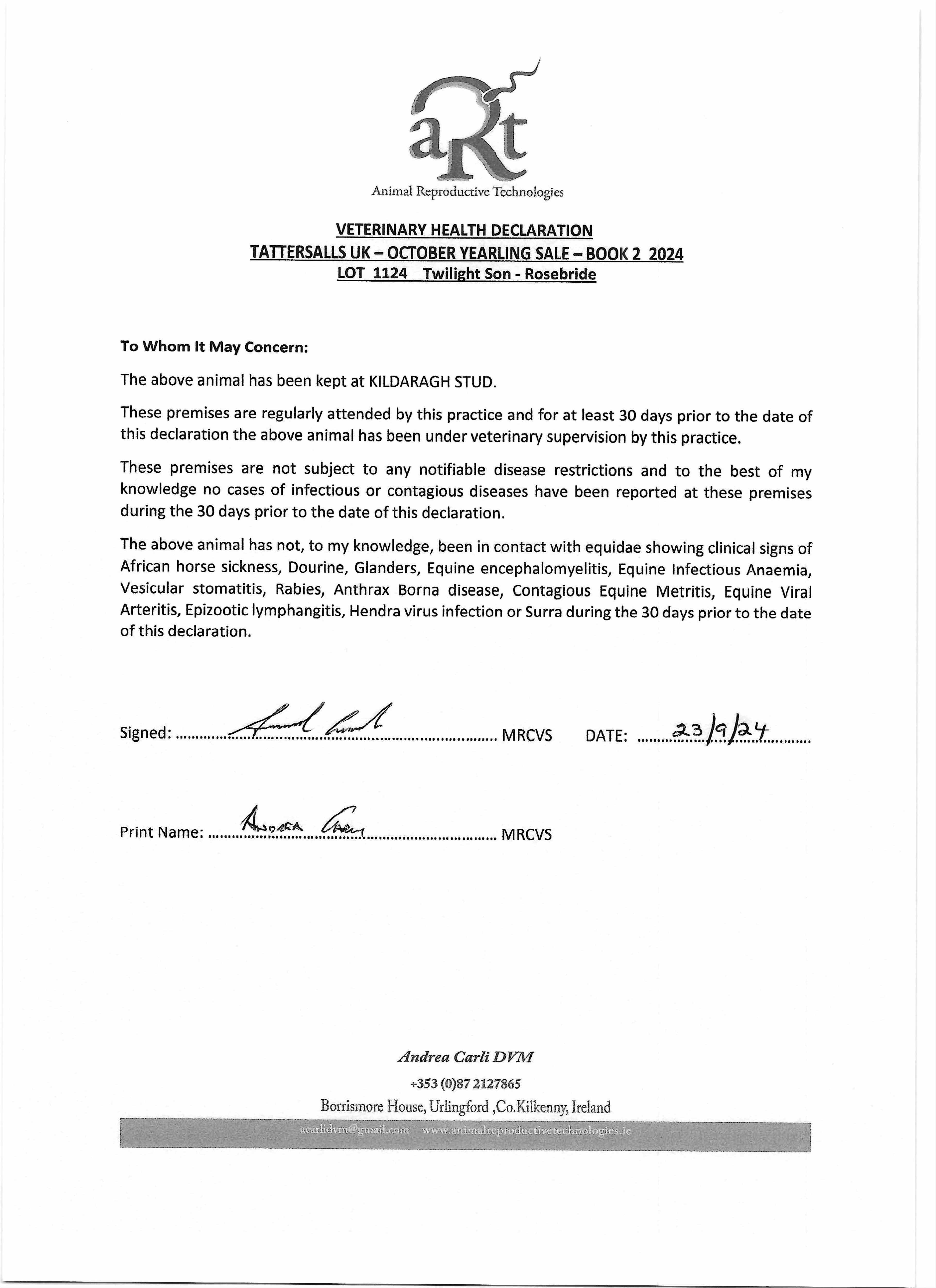 Consignor: Kildaragh Stud, Ireland (Agent)