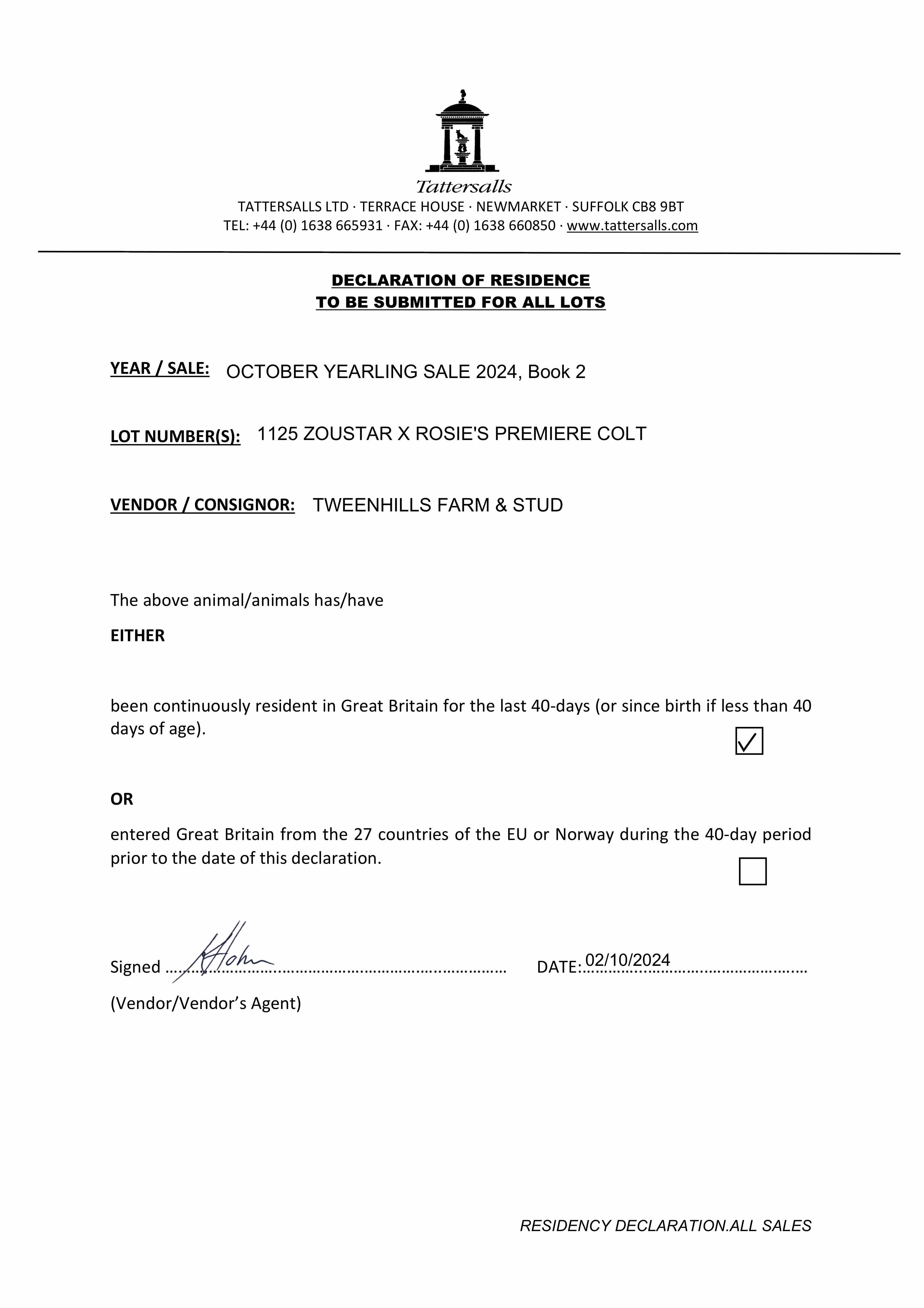 Consignor: Tweenhills Farm & Stud