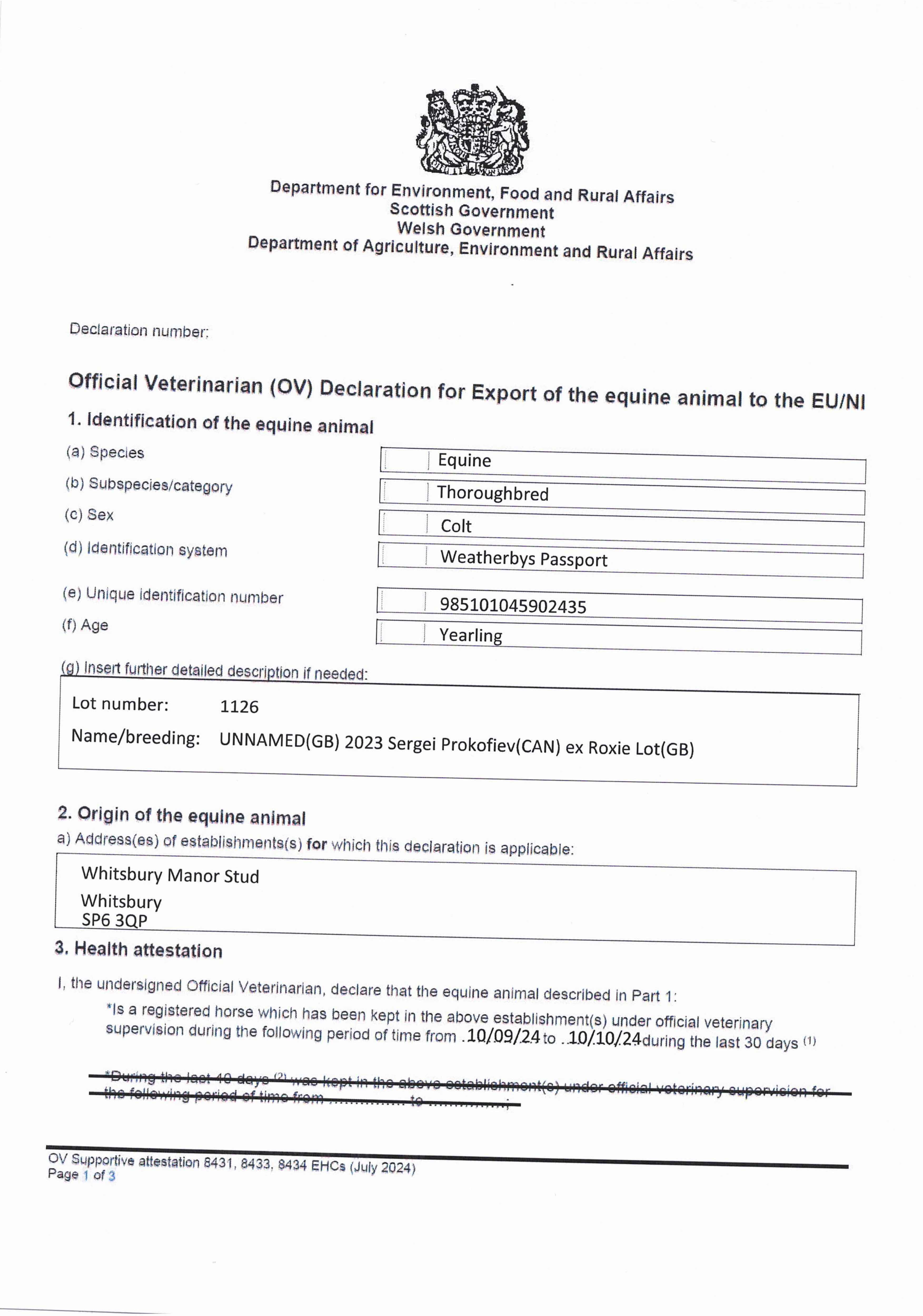December Foal Sale 2024 lot 620 F. by Havana Grey (GB) 2024, Whitsbury Manor Stud=>Abercorn Investments 170,000 gns