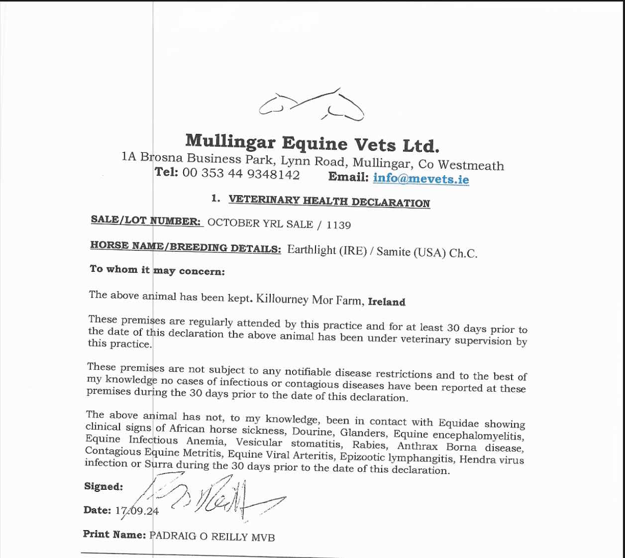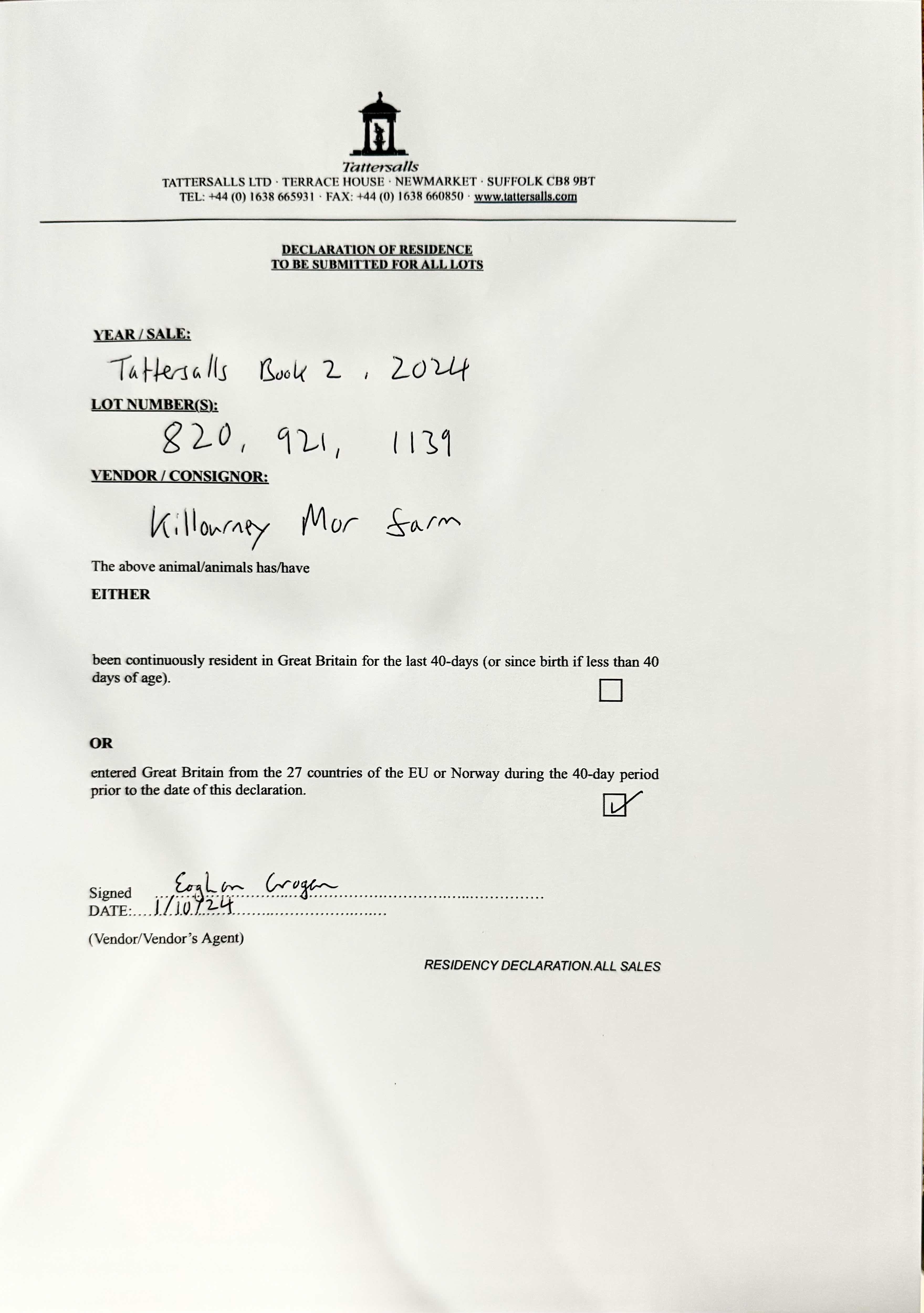 Consignor: Killourney Mor Farm, Ireland