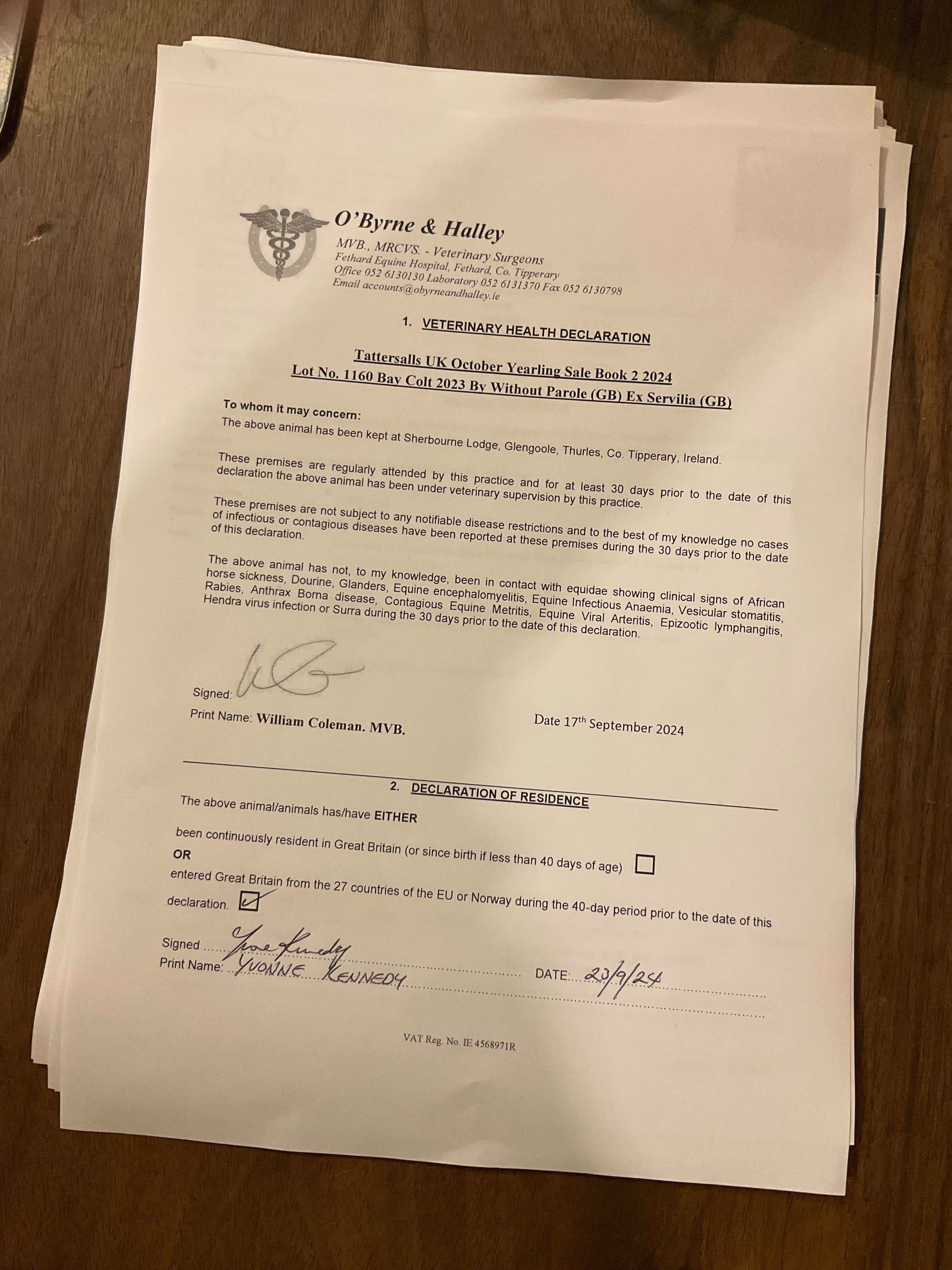 Consignor: Sherbourne Lodge, Ireland