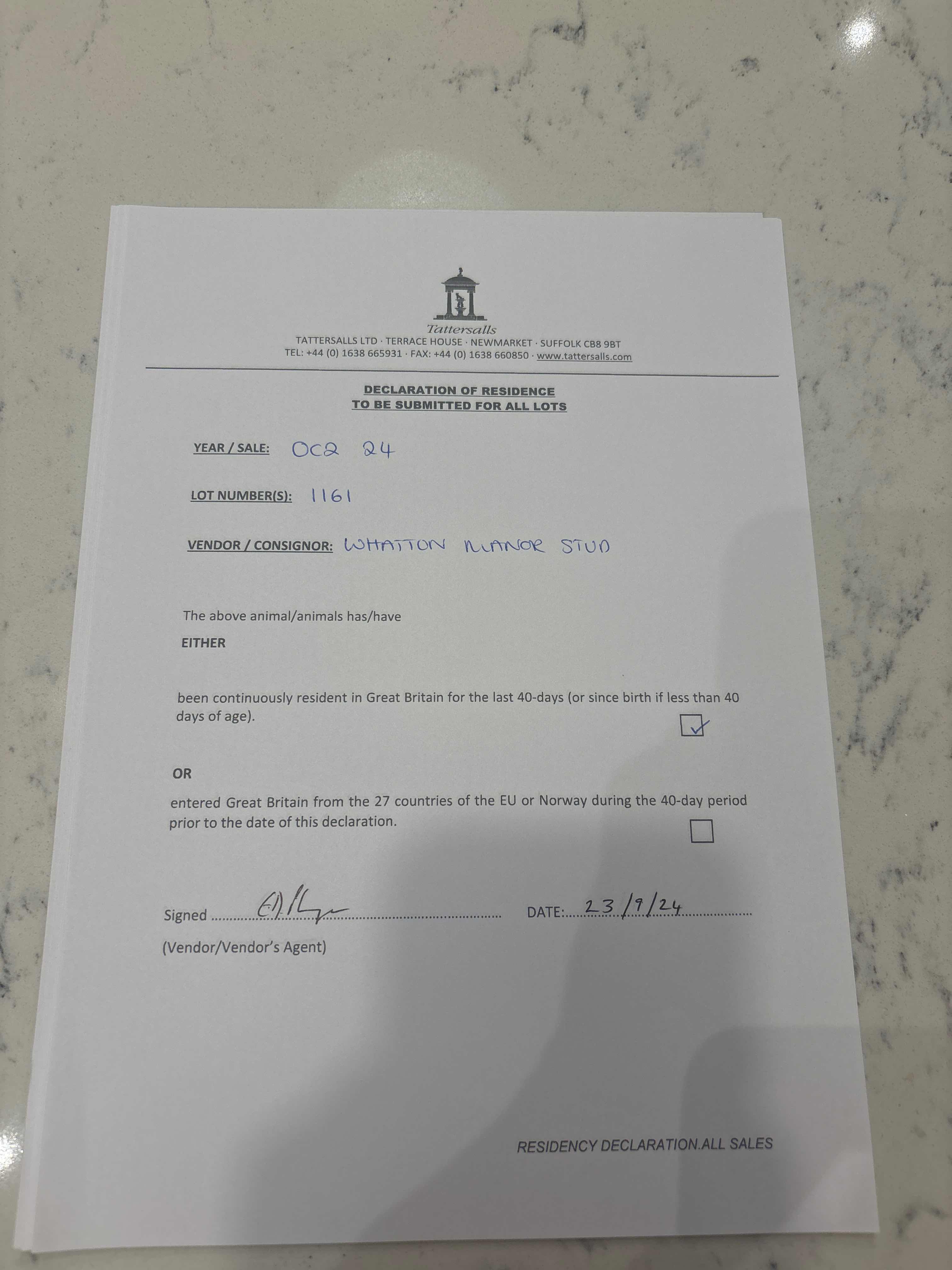 Consignor: Whatton Manor Stud