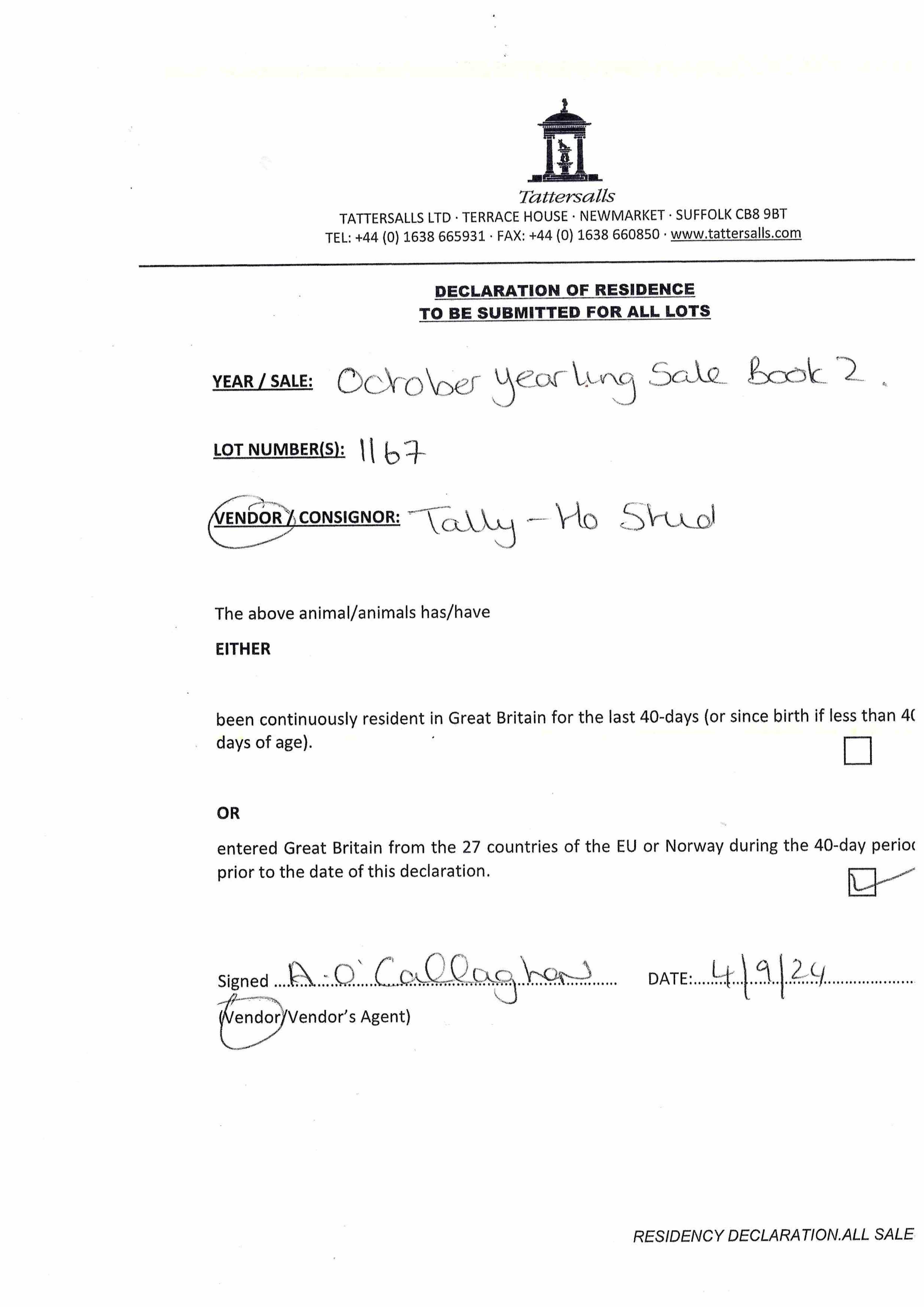 Consignor: Tally-Ho Stud, Ireland