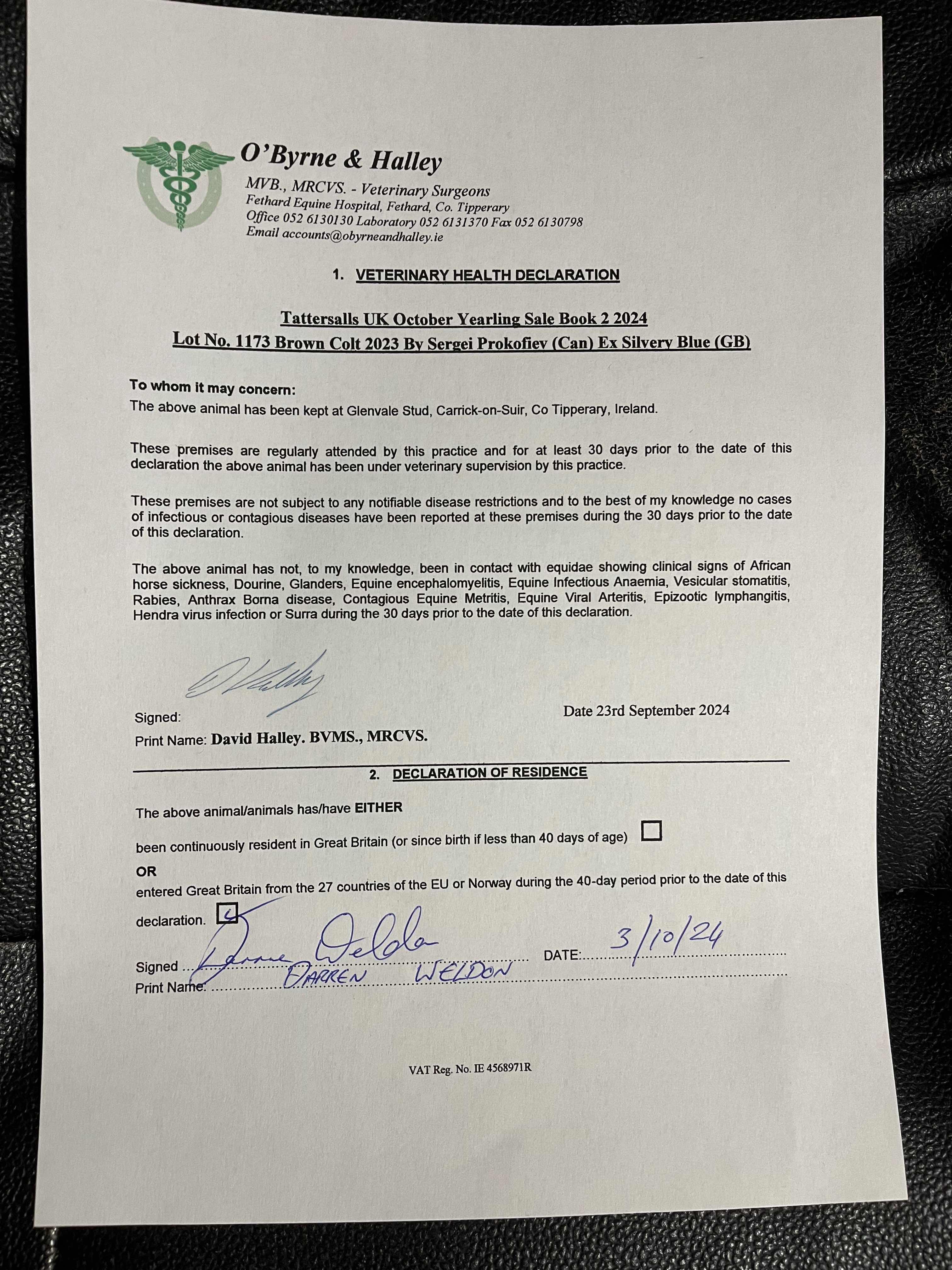 December Foal Sale 2024 lot 735 F. 2024, Kirtlington Stud=>Aughamore Stud 17,000 gns