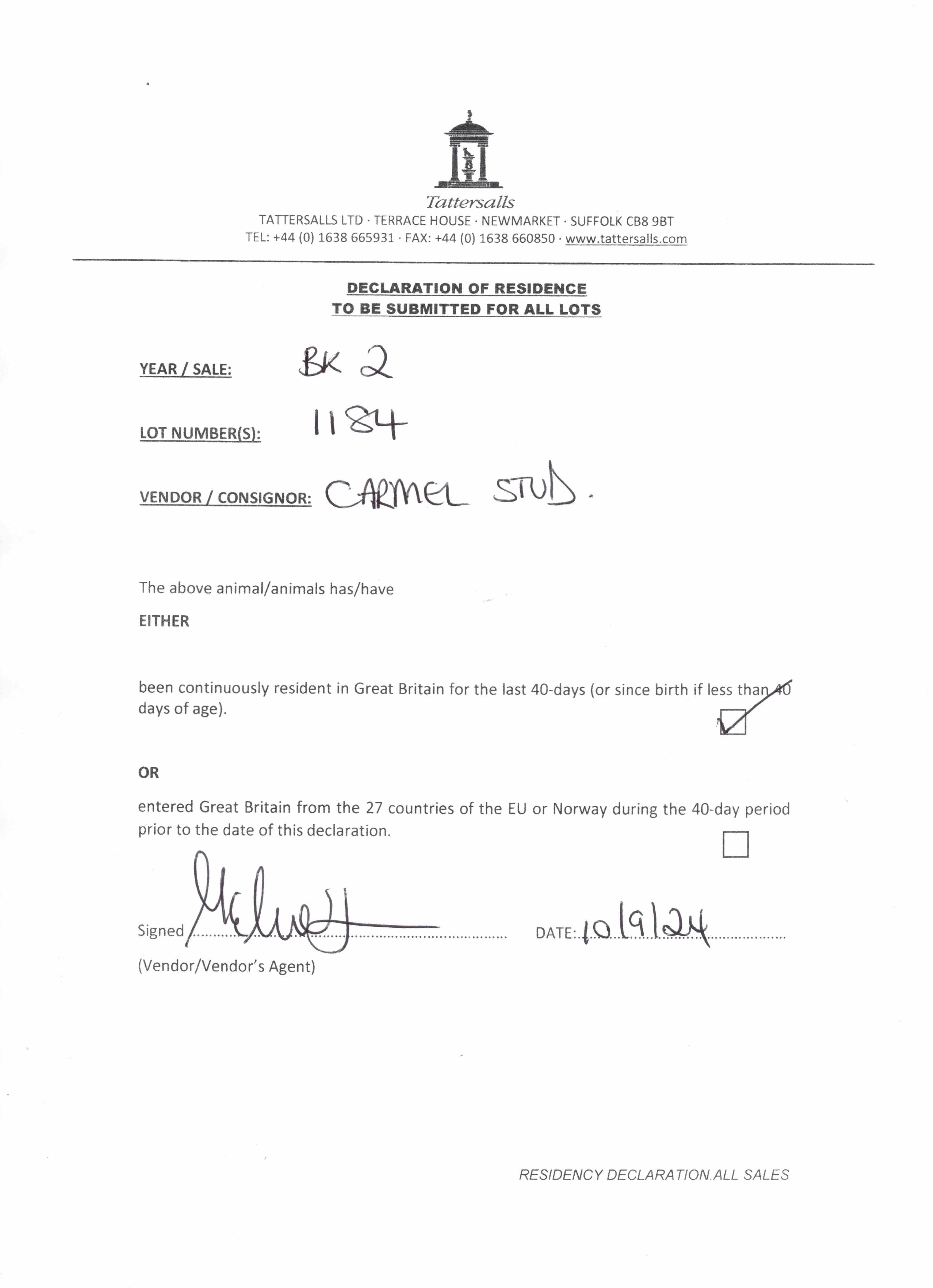 Consignor: Carmel Stud