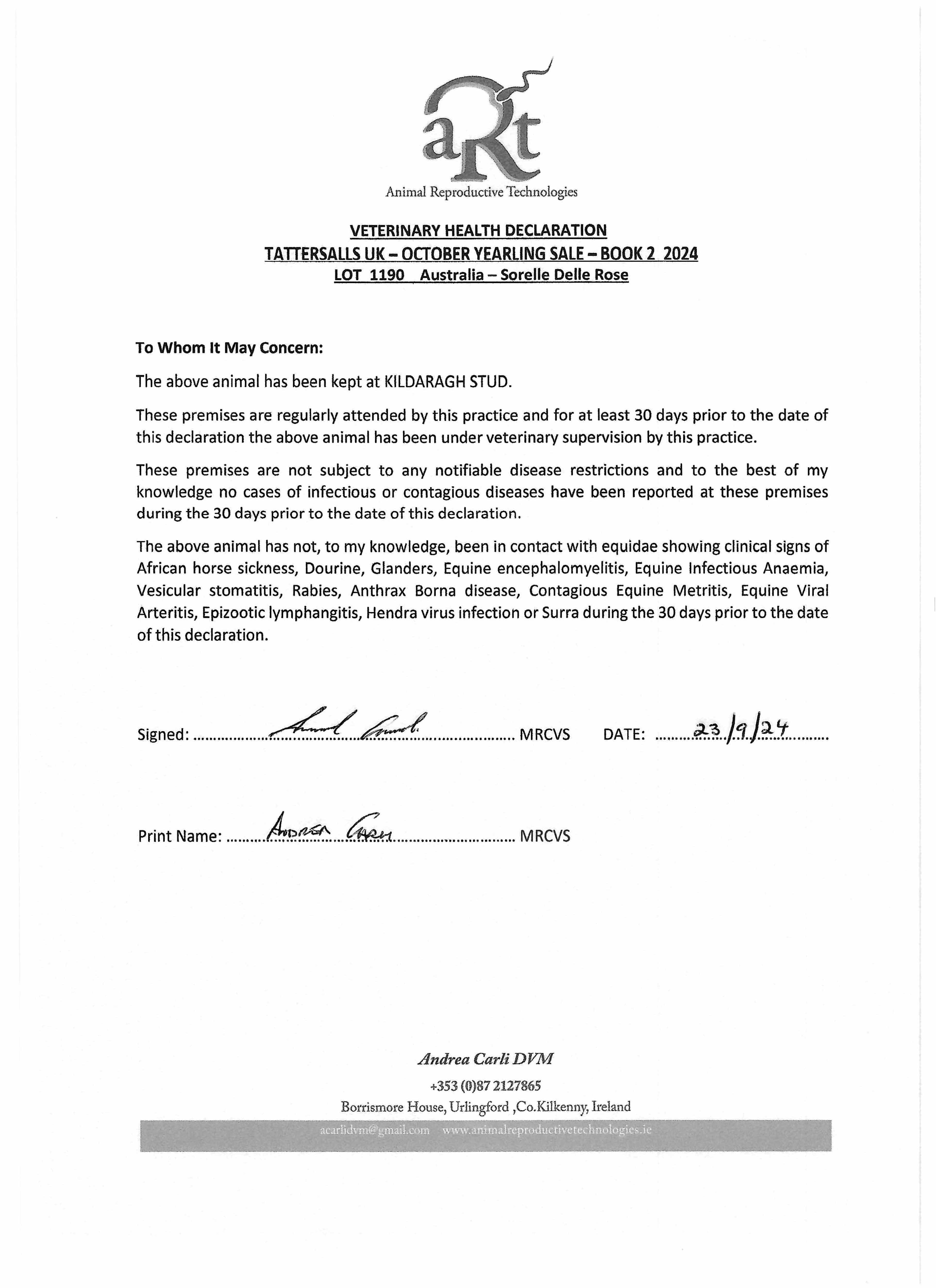 Consignor: Kildaragh Stud, Ireland (Agent)