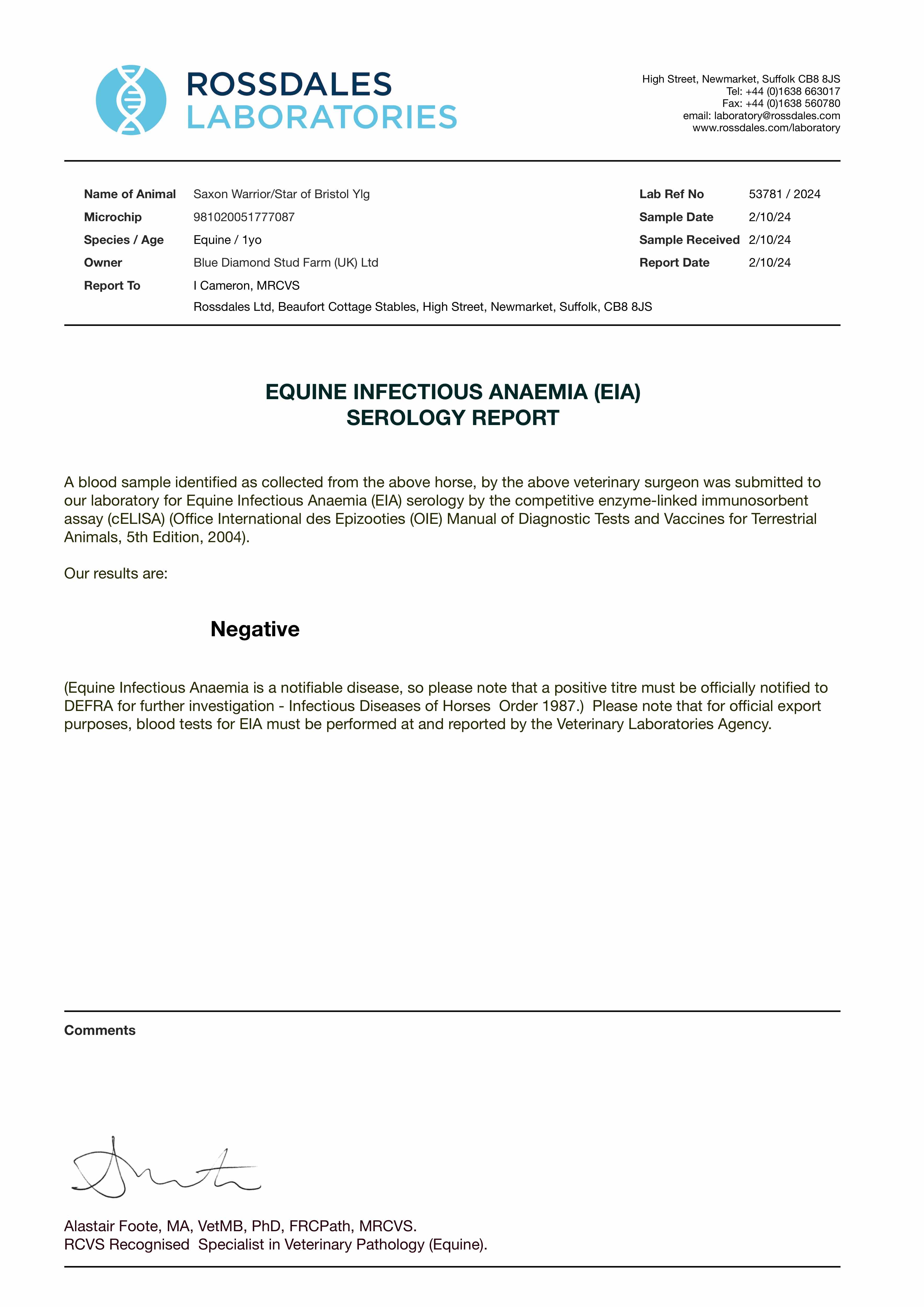 Consignor: Blue Diamond Stud Farm (UK) Ltd.