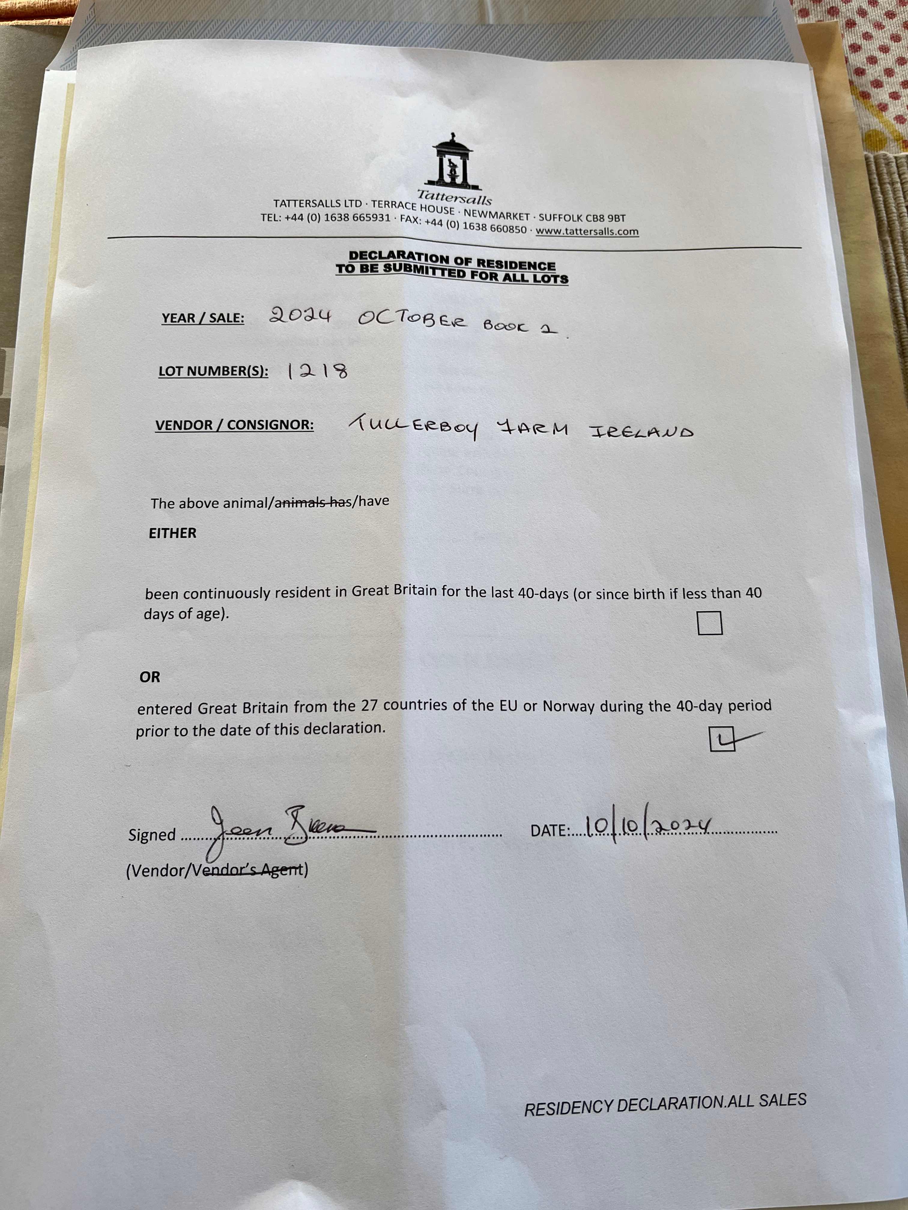Consignor: Tullerboy Farm, Ireland
